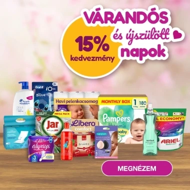 Mindent megtalálok, amit Zente használ: Libero, Avent, Chicco és WaterWipes minden mennyiségben. Jó, hogy van csomagolásmentes kiszállítás és gyorsak is. Nagyon jók az árak és a pontgyűjtögetés is nagyon izgalmas. Mindemellett mindig könnyen tájékozódok, ha akció van, vagy újdonságok érkeztek. Szeretjük!