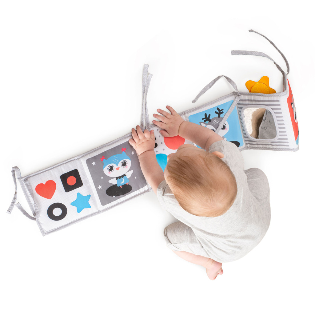 HU DescriptionSzínes könyv, amely stimulálja a szemet és ösztönzi a hasonfekvést,babakocsiban, kiságyban vagy padlón lévő játékként használhatóújszülött kortól. Önállóan áll, síkban fekszik vagy összeköthető.Színes oldala tele van izgalmas színekkel és tapintható elemekkel, amelyekösztönzik a fejlődő készségeket. Könnyen összecsukható és bárhovámagával vihető útközben.Tulajdonságok:Fekete-fehér oldal – 1. fázis: nagy kontrasztú képek a koraifejlődésért.Nagy tükröt tartalmaz a megfigyeléshez hason fekveBátorítás és érzelmi intelligenciaSzínes oldal – 2+3. fázis:Nagy kontrasztú színes képek a baba látásának serkentésére és avizuális ingerek gazdagításáraPlüss felhő a játékhoz ösztönzi a durva motoros készségeketA tapintható szalagok fejlesztik a finommotoros készségeketÖnállóan áll, síkban fekszik vagy megköthetőMéret: 84 × 16,2 cm