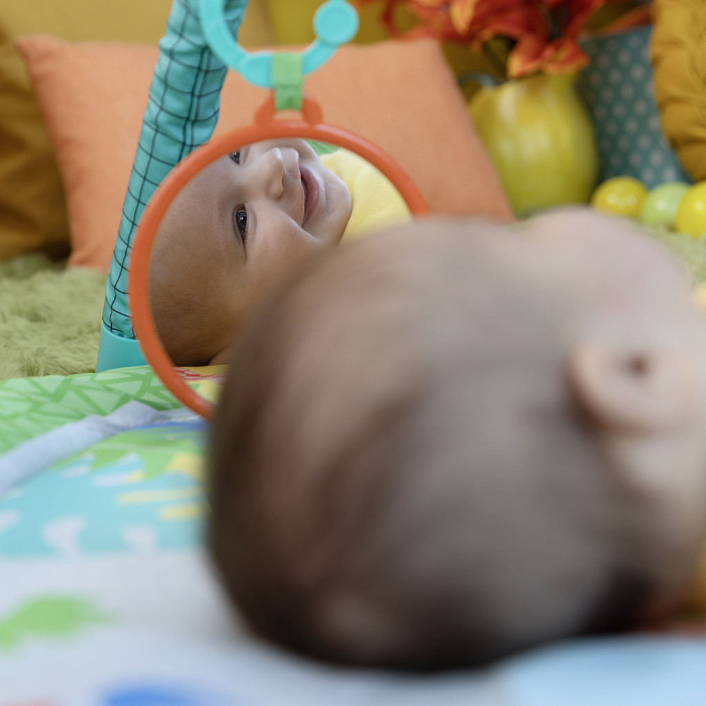 HU DescriptionDzsungel témájú játszószőnyeg: Egy játékokkal teli szafari vár rád. A kék, zöld, narancssárga, sárga és más élénk színek felkeltik a baba figyelmét vidám, mosolygós, állatfigurás barátokkal együtt. Változtassa a játékidőt szafarivá a Bright Starts Wild Wiggles Activity Gym segítségével. A baba szívesen fog feküdni, rugdalózni és játszani ezen a takarón. Az új, helytakarékos összecsukható játékhíddal és az 5 játékot tartalmazó csomaggal rengeteg szórakozás vár egy kompakt helyen.Tartalmaz egy plüss zenélő elefántot, tükröt, csörgő napocskát, levéllel ellátott játékot és gyűrű alakú csörgőt. Az elefánt barát 4 dallamot játszik, hogy szórakoztassa a babát. A játékok mind levehető láncokon vannak, így a takaróról származó játékokat átalakíthatod babakocsis játékokká. Ez a babajátszótér tele van színes állatfigurákkal, mint az elefánt, a majom és az oroszlán. A játékhíd könnyen eltávolítható, amikor a baba elkezd nőni és mászkálni. Egyszerű tárolás: a FoldAway játékhíd helyet takarít meg, rengeteg szórakozást kínál a játék során, miközben kényelmesen összecsukható a kompakt tárolás érdekében; távolítsa el és vegye le a levehető játékhidat, és hajtsa össze vagy tekerje fel az alátétet, hogy el tudja rakni, amikor nincs használatban.Méretek: 45,7 cm (M) x 78,7 cm (Sz) x 78,7 cm (H) A takaró mosógépben mosható: A plüss játszószőnyeg mosógépben mosható az 5 játékkal, amelyek könnyen tisztíthatók.**Szállító címe:** KIDS2 EUROPE BV 5 Keizersgracht 287, 1016 ED Amsterdam, Netherlands; +31 20 241 0934