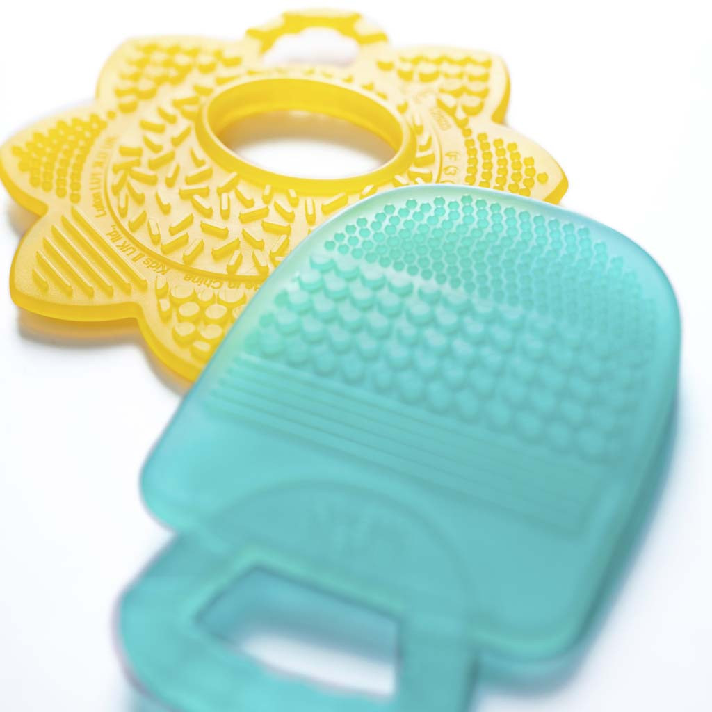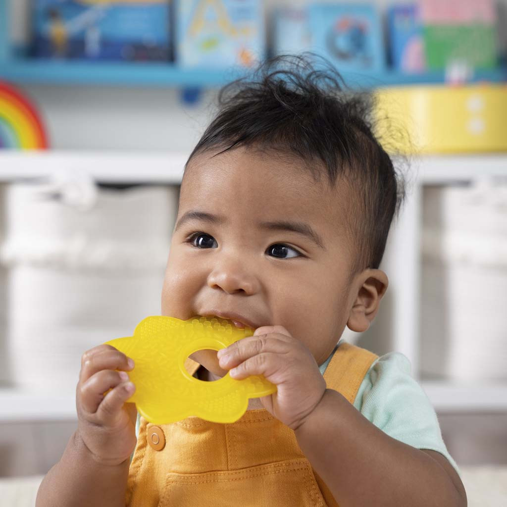 A fájó fogíny megnyugtatása sosem volt egyszerűbb, mint az új Bright Starts Sunny Soothers napocska és jégkrém formájú rágókáival. A sörtés kialakítás masszírozza a baba fogínyét az első fogak megjelenésekor. A BPA-mentes anyagnak és a könnyen megfogható formának köszönhetően a baba beleharaphat a napocskába vagy a jégkrémbe, hogy enyhítse a fogzást, ami nagyon fájdalmas lehet!- A sörték segítenek masszírozni a baba ínyét és megnyugtató enyhülést hoznak.- biztonságos a fogak számára a BPA-mentes anyagnak köszönhetően- ideális babáknak 3 hónapos kortól- könnyen karbantartható A termék méretei: 10,8 cm x 1,27 cm x 10,8 cm**Szállító címe:** KIDS2 EUROPE BV 5 Keizersgracht 287, 1016 ED Amsterdam, Netherlands; +31 20 241 0934