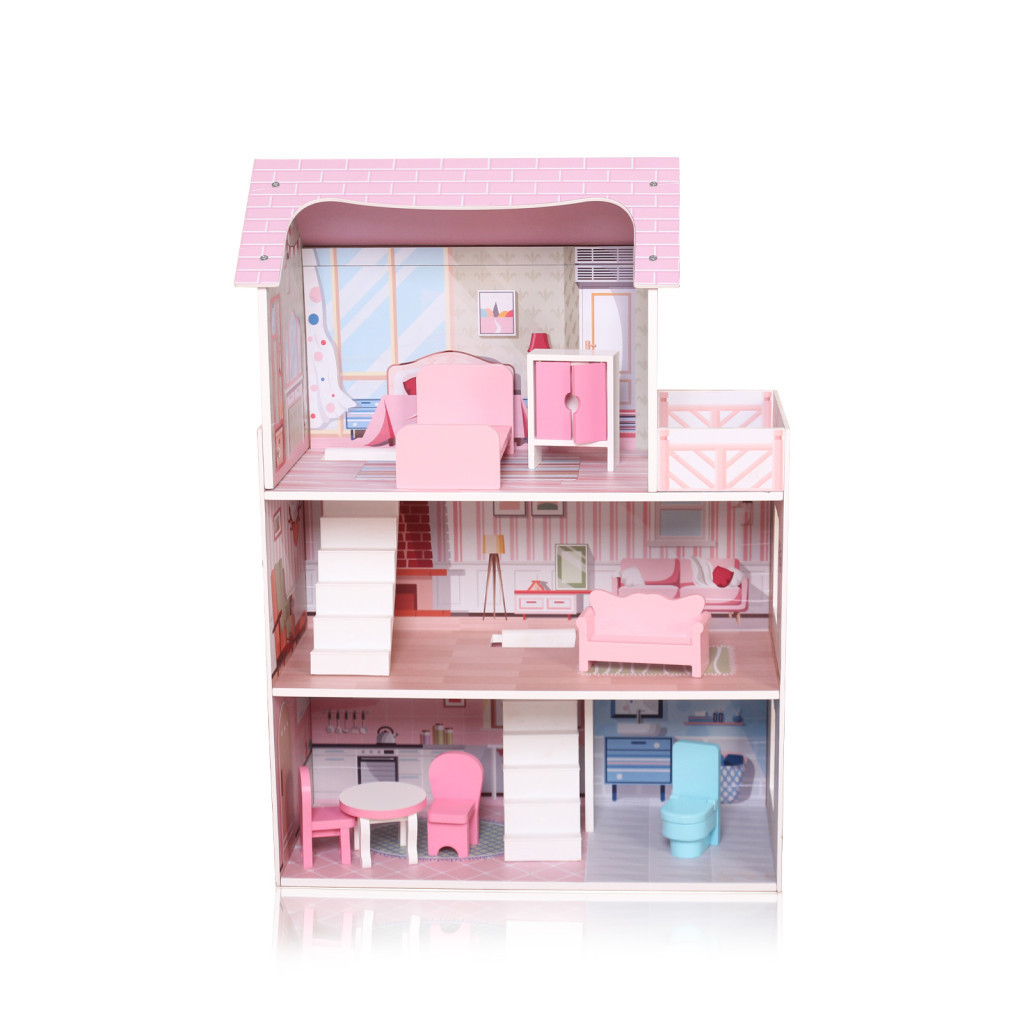 Gyermek fa babaház 7 db bútorral. Ajándékozzon felejthetetlen pillanatokat és több órányi szórakoztató játékot egy nagyszerű babaházzal.