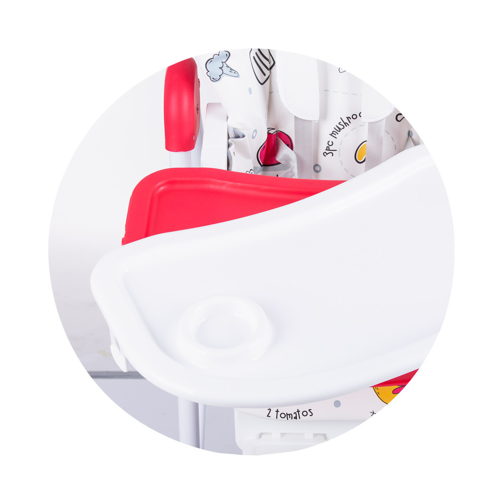 • Az 5 pontos öv és a tálcába épített kicsúszásgátló teljes biztonságot nyújt kiesés ellen.
