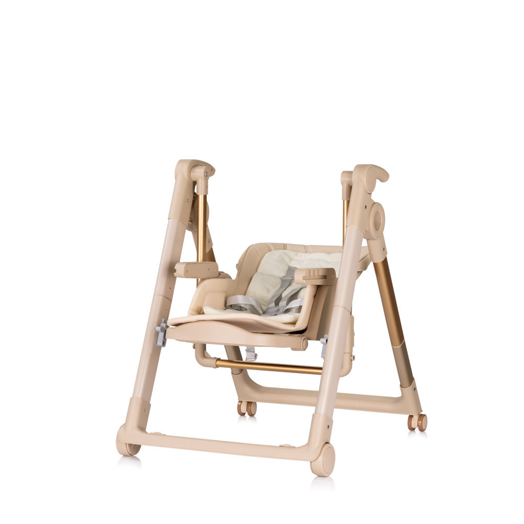 2 funkciós termék a Chipolinotól, hinta és etetőszék egyben. 4 kerekének köszönhetően könnyedén mozgatható.