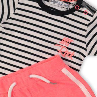 Dirkje márkájú gyermek szett.a Dirkje márka minőségi és kényelmes ruházatot kínál a gyerekeknekkellemes színekbenkényelmes anyagból készültA szett tartalmazza:rövid ujjú pólórövid, rugalmas nadrágKarbantartás:ajánljuk a termékcímkén feltüntetett mosási szimbólumok betartásátAnyag:póló 95 % pamut, 5 % elasztánnadrág 57 % pamut, 38 % poliészter, 5 % elasztán
