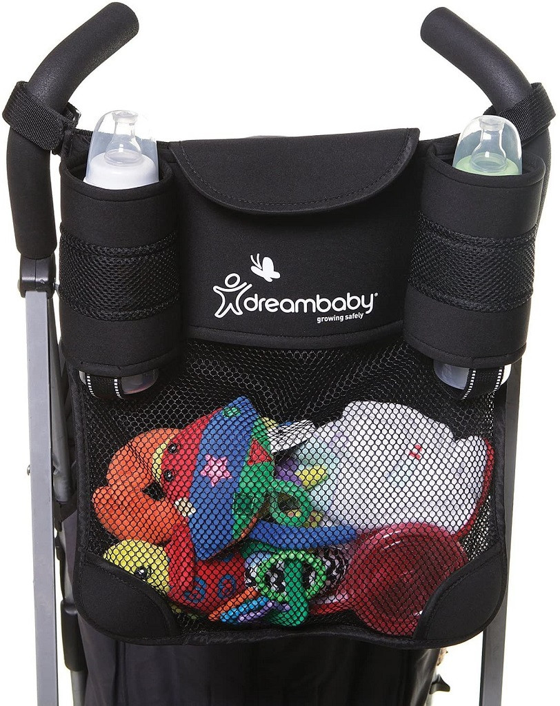 A Dreambaby babakocsi szervező megkönnyíti az utazást a gyerekekkelJellemzők:Könnyen rögzíthető mindenféle babakocsira.Erős, strapabíró pántok.Stílusos design.Két italtartóval rendelkezik.Remek a dolgok, játékok és pelenkák kéznél tartására.