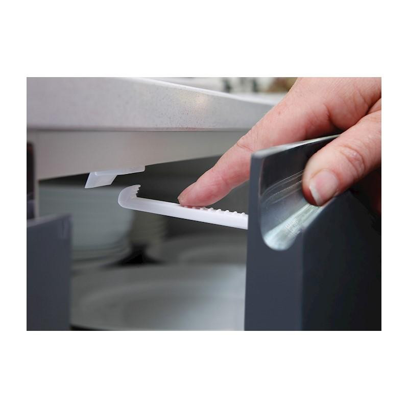A Dreambaby® biztonsági zárak erősek, könnyen telepíthetők ésgyors hozzáférést biztosítanak a felnőtteknek, miközben a gyerekek számáraszinte lehetetlen hozzáférni a szekrényekhez és fiókokhoz, amelyekveszélyes tárgyakat tartalmazhatnak.Alkalmas a felső fiókokhoz és használható az alsó fiókoknál is,ahol van egy felső fiókelválasztó, amelyre rögzíthetők.Elegáns és finom design.