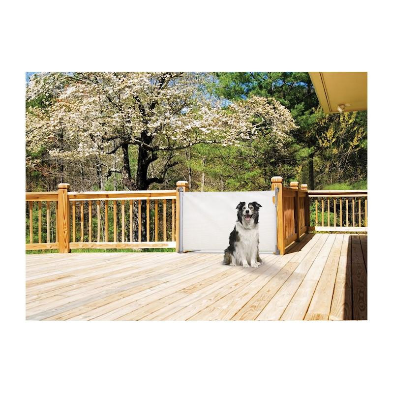 Ez a behúzható korlát akár 140 cm széles nyílásokhoz is megfelelő, és praktikus akadályt nyújt mindenféle különböző szélességű helyen, és amikor nem használják, ügyesen visszahúzható. Az egyszerű kioldás és a csat kikapcsolása lehetővé teszi, hogy egyik helyről a másikra mozgassa, 2 készlet szerelőkonzojjal.Ez a korlát bel- és kültéri használatra is alkalmas. Erős és robusztus. Nem jelent botlásveszélyt, így lépcsőn való használatra is ideális. Ha kültéren használják, javasoljuk, hogy rossz időjárás esetén vigyék be a korlátot.Jellemzők:Clip-on / Clip-off kioldás.140 cm széles nyílásokhoz alkalmas, 93 cm magassággal.2 készlet szerelőkonzoj tartozik hozzá, amelyek lehetővé teszik a korlát két különböző helyen való használatát.Egykezes nyitás és zárás.Ha nem használják, egyszerűen visszahúzhatóErős, strapabíró, átlátszó háló.Kétirányú nyitásMegfelel az európai EN 1930: 2011 szabványnak24 hónaposnál fiatalabb gyermekek védelmére tervezték.