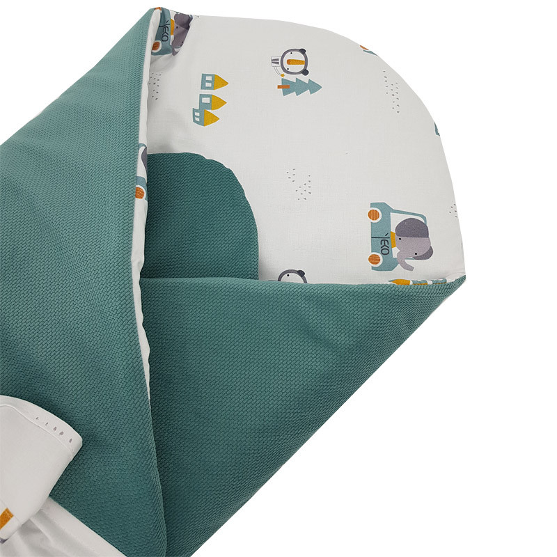 Bélelt takaró, kiváló minőségű, digitálisan nyomtatott pamutból ésVELVET anyagból készült, lélegző hipoallergén szállal töltve.Gyönyörű szín és a textília legmagasabb minőségű megmunkálása anagyon finom tapintású egyedi Premium sorozat termékét hozza létre. Tartalmaz egy kókusz betétet, amely biztosítja a szülőknek a gyermek szilárdabb tartását, amikülönösen fontos az élete első heteiben.A betét később kivehető, ami jelentősen megnöveli a helyeta gyermek számára és így hosszabb ideig használható a termék.VEGYE KI A BETÉTET MINDEN MOSÁS ELŐTT!Méretek: 75 × 75 cm (+/- 2cm)Anyagösszetétel: Külső anyag: 100% PoliészterBelső anyag: 100% Pamut Töltet: szilikonos hipoallergén nem szőtttextília – 100% PoliészterKiegészítő: masni Tartalmaz: kókusz betétet, tépőzárat