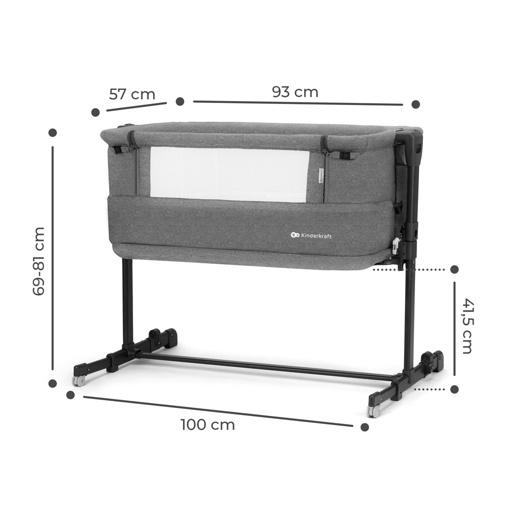 A gyerekeknek szükségük van a szülők melegére és közelségére – a biztonság iránti igényük különösen éjszaka nő. A Kinderkraft vállalatnál tudjuk, hogyan egyeztessük össze ezt a szükségletet a kényelmes alvás igényével. Az NESTE GROW hordozható kiságy több mint egy klasszikus hordozható ágy. Ez egy multifunkciós kiságy, amely egyszerre szolgál gyermekágyként, hordozható ágyként és önálló ágyként egy kétéves gyermek számára.Az NESTE GROW kifejezetten azoknak a szülőknek készült, akik a születéstől kezdve a lehető legközelebb szeretnének lenni gyermekükhöz, miközben egy univerzális designnal rendelkező ágyat keresnek. Az 5 szinten állítható magasság segítségével az NESTE GROW-t pillanatok alatt rögzítheti egy nem szabványos ágyhoz is. Az ágy alacsonyabb és szélesebb alappal rendelkezik, így kétéves gyermek számára is megfelelő. Egyetlen mozdulattal beállíthatja a matrac dőlésszögét az egyik két szint közül – ha a gyermek náthás vagy gyakran visszaböfögi az ételt, elegendő a matrac egy részét enyhén megemelni, hogy biztosítsa számára az édes és nyugodt alvást egész éjszaka.Jellemzők:Az NESTE GROW egy 3 az 1-ben termék – szolgál hordozható ágyként, gyermekágyként és idősebb gyermek ágyaként (85 cm magasságig).Születéstől 2 éves korig – több éven át szolgálja gyermekét. Könnyen meghosszabbítható egy idősebb gyermek ágyává.Az ágy lehetőséget ad a matrac dőlésszögének beállítására maximum két szinten. Ha a gyermek náthás vagy gyakran visszaböfögi az ételt, megfelelően beállíthatja a matracot.Az NESTE GROW-nak öt szinten állítható a matrac magassága, így könnyen hozzáigazíthatja az Ön ágyának magasságához.A hosszúságban állítható lábak lehetővé teszik, hogy pontosabban állítsa be az ágy és a szülők ágya közötti távolságot.Időtlen designjának köszönhetően az NESTE GROW rendkívül univerzális és tökéletesen illeszkedik a különböző belsőépítészeti stílusokhoz.Kényelem:A hordozható ágy funkcióban a leengedett oldalsó részen háló található. Így mindig szemmel tarthatja gyermekét.Az alj leengedése után minden oldalon megjelenik egy puha háló – lehetővé teszi a gyermek diszkrét megfigyelését, és az ágyrácsok hiánya növeli a gyermek biztonságát még a legnyugtalanabb éjszakákon is.A szett része egy kemény matrac, amely méretben illeszkedik a kosárhoz. A fizioterapeuták az első hónapokban a kemény matracokat ajánlják a gyermekek számára. Van egy további eleme, amelynek köszönhetően a matrac meghosszabbítható, hogy illeszkedjen az aljhoz is az idősebb gyermek ágya funkcióban.Biztonság:Az NESTE GROW hordozható kiságy strapabíró és erős acélszerkezettel rendelkezik. Biztosítja a szerkezet stabilitását és hosszú élettartamát.Rendelkezik egy egyszerű és biztonságos rögzítő rendszerrel a szülők ágyához hosszú hevederek segítségével.A leengedett oldalsó rész továbbá puha anyaggal van védve.Az NESTE GROW hordozható ágy megfelel az EN 16890:2017 és az EN 1130:2019 gyermekágyak és hordozható ágyak, valamint az EN 716 gyermekágyak szabványainak.Műszaki paraméterek: Anyagok:keret: acél,huzat: poliészter,műanyag elemek: pp.Méretek:Hosszabb oldal hossza: 93 cmRövidebb oldal hossza: 56 cmA kiságy magassága a padlótól a fekvőfelület felső széléig: 38 cmA támasztóláb minimális és maximális hossza a földtől a kiságy aljáig mérve: 44 cmA szülők ágyához közeledő láb minimális és maximális hossza: 56 cmA szülők ágyához közeledő lábak közötti távolság, a lábak belső oldalán mérve: 67,5 cmA távolság a földtől a kiságy legmagasabb pontjáig: 81 cmMagasság: 1. szintteljes magasság: 81 cm,a kiságy aljától a padlóig: 44 cm.2. szintteljes magasság: 78 cm,a kiságy aljától a padlóig: 41 cm.3. szintteljes magasság: 75 cm,a kiságy aljától a padlóig: 38 cm.4. szintteljes magasság: 72 cm,a kiságy aljától a padlóig: 36 cm.5. szintteljes magasság: 70 cm,a kiságy aljától a padlóig: 33 cm.Súly: 10kg A csomagolt termék súlya: 11,5 kgFigyelmeztetés: Hagyja abba az ágy használatát, amint a gyermek képes önállóan felülni, kihúzni magát vagy négykézláb emelkedni. Ne használja ezt a terméket az utasítások előzetes elolvasása nélkül.
