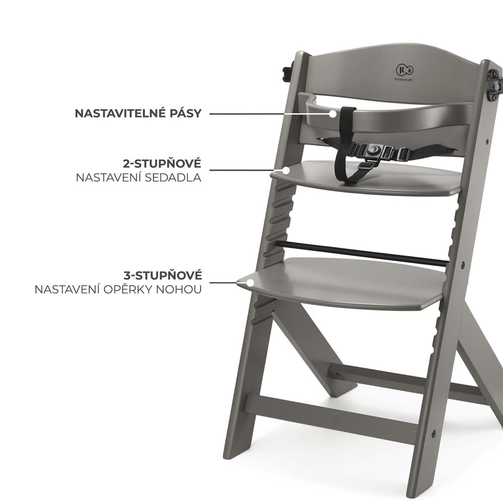 Létezik egyáltalán olyan etetőszék, amely több évig szolgálja gyermekét? Igen! Pontosan ilyen szék az ENOCK. Ez az időtlen bútordarab biztonságos és praktikus magas etetőszék, valamint ergonomikus szék nagyobb gyermekek számára. Hogyan lehetséges ez? A ülés és a lábtartó magassága állítható, ami megkönnyíti a szék beállítását a gyermek életkorának megfelelően. Az ENOCK a családjára lett tervezve – ez egy magas szék, amely illeszkedik otthona belső teréhez, majd gyermekének játékszékként vagy asztali székként szolgál. Ráadásul könnyen hozzáigazítható a konyha, az étkező vagy a nappali asztalához. A formázott háttámla révén a gyermek helyes testtartást tart fenn étkezés közben, és együtt töltheti az időt a felnőttekkel az asztalnál.Biztonság:hárompontos biztonsági övek a magas székben, amelyek könnyen leszerelhetők, amikor az ENOCK-ot nagyobb gyermekek számára széké alakítják.biztonsági korlát a nagyobb gyermekek székéhez, akik szüleikkel szeretnének ülni a magas asztalnál.tömör bükkfa és rétegelt lemez felhasználása a szék gyártásánál lehetővé tette egy rendkívül tartós szerkezet létrehozását. Ennek köszönhetően stabil és szilárd – évekig otthonában marad!a szék megfelel az EN 14988 szabványoknak (a magas székek biztonsági szabványa).Kényelem:formázott háttámla – a gyermek mindig kényelmesen fog ülni, legyen szó akár 10 hónapos, akár 5 éves koráról.széles tálca a legkisebbek számára, amely nemcsak tányérokat vagy tálakat tartalmaz. Elég nagy ahhoz, hogy a gyermek rajzolhasson vagy kockákat tárolhasson rajta.az ülés széles és mély, így a nagyobb és idősebb gyermekeknek nem lesz problémájuk a kényelmes és kényelmes ülésben.a szék könnyen tisztítható még a leglátványosabb, élményekben gazdag ebéd után is. Csak azonnal törölje le nedves ruhával, majd szárítsa meg papírral.az ENOCK nagyon gondosan kidolgozott – ennek köszönhetően a szék teljes textúrája tökéletesen sima és kellemes tapintású.Funkciók:multifunkcionális – az etetőszék néhány pillanat alatt nagyobb gyermekek székévé, majd óvodás székévé alakítható. Az ENOCK 6 hónapos kortól 10 éves korig szolgálja gyermekét! A gyermek maximális súlya a magas székben: 15 kg, alacsony székben: 35 kg (kb. 10 év).ötfokozatú háttámla beállítás a magas székhez lehetővé teszi az ENOCK jobb hozzáigazítását gyermekéhez. Az etetőszék esetében a háttámla 2 szinten állítható.állítható lábtartó (4 lépés a magas és 3 az etetőszékhez) növeli a gyermek kényelmét étkezés közben – életkorától és magasságától függetlenül!leszerelhető korlát és övek lehetővé teszik a szék beállítását a kisgyermek életkorának megfelelően.könnyű szerkezet lehetővé teszi a szék problémamentes áthelyezését – könnyen elviheti a teraszra, a nappaliba vagy a konyhába.időtlen design – a szék különböző stílusú belső terekhez illeszkedik. Skandináv, minimalista, klasszikus: az ENOCK mindig nagyszerűen fog kinézni otthonában!Kidolgozás:hossz: 79,5 cmszélesség: 49,5 cmmagasság: 49 cm6,4 kgmagas szék: kb. 6 hónaptól 36 hónapig (15 kg-ig)alacsony szék: 36 hónaptól 10 évig (35 kg-ig)a termék méretei és súlya csomagolással: 84 × 53 × 8 cm/7,4 kg.