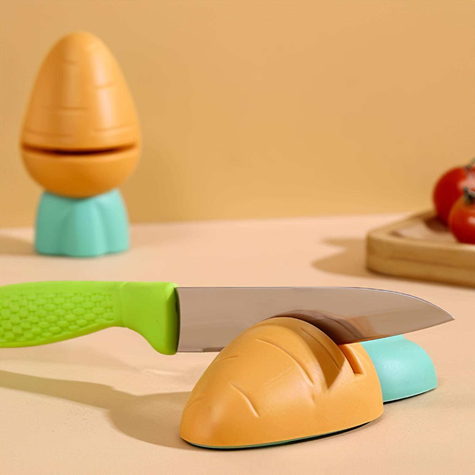 Ez a répa formájú késélező nemcsak a konyháját dobja fel, hanem a konyhai kései élességét is visszaadja. A praktikus és egyedi megjelenésű késélező garantáltan kedvence lesz a gasztronómiáért rajongóknak. Az ergonomikus, répa formájú kialakítás nemcsak látványos, hanem kényelmes fogást is biztosít a késélezés során. Az élező belsejében található kiváló minőségű élezőkövek finoman és hatékonyan élesítik a különböző konyhai késeket.
