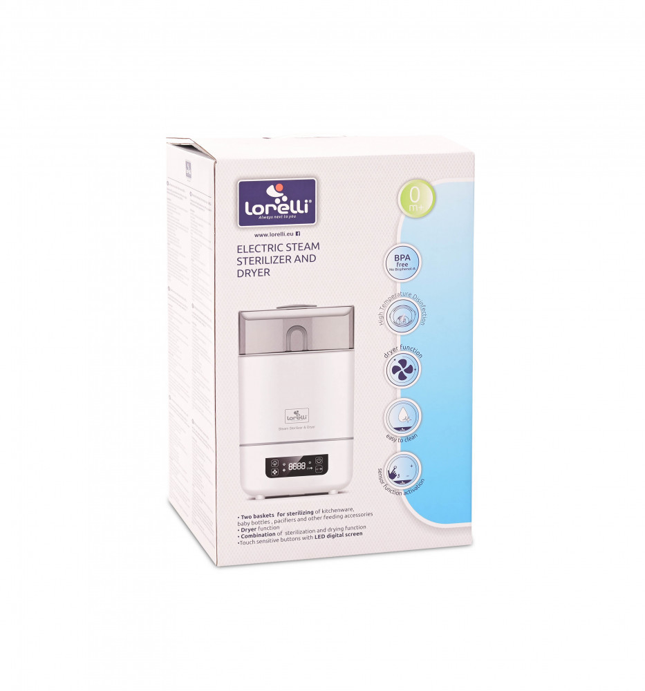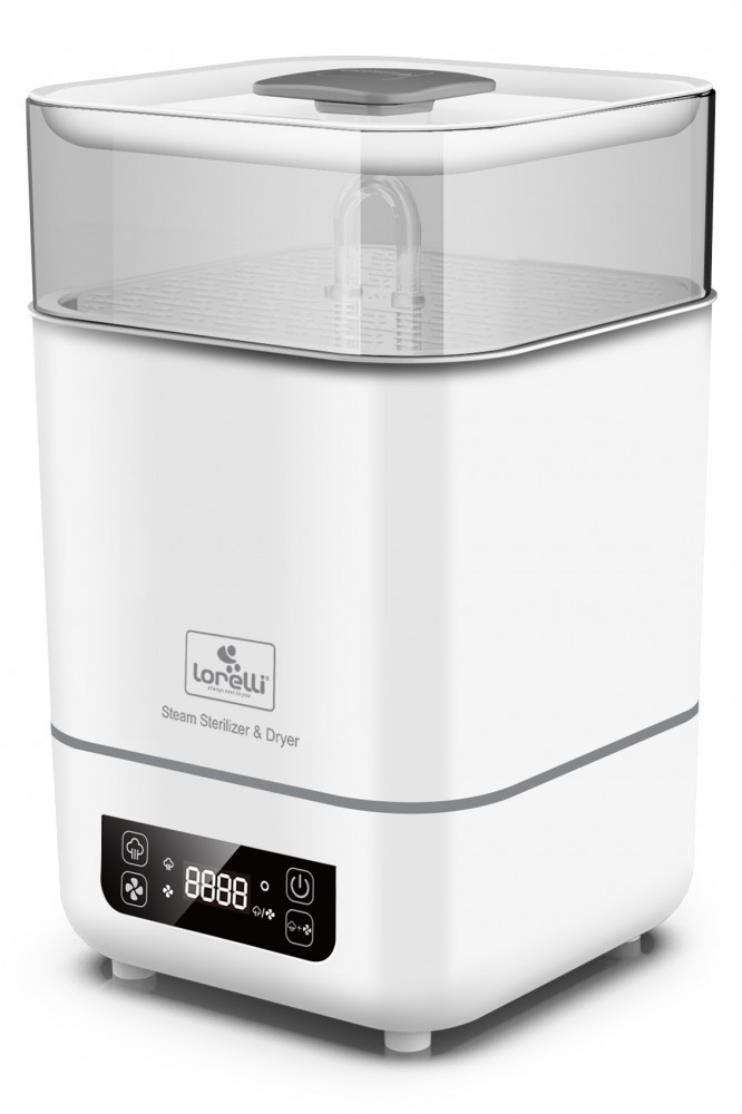 A Lorelli elektromos gőzsterilizáló és szárító vegyszermentesen tisztítja és fertőtleníti a baba felszereléseit.
