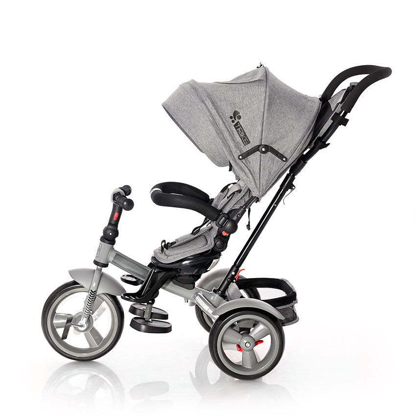 • Első időkben a szülő tudja az erre kialakított, 2 pozícióban állítható magasságú tolókormánnyal irányítani miközben a pici nézelődhet, majd amikor már nagyobb saját maga is hajthatja.