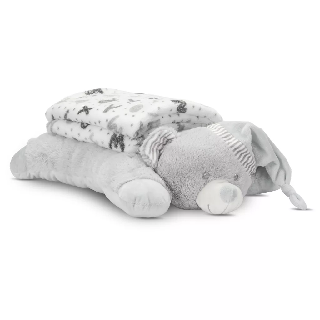 Lorelli Poffy Duo takaró 75x90 cm párnával 45x30 cm - White Grey Teddy Bear