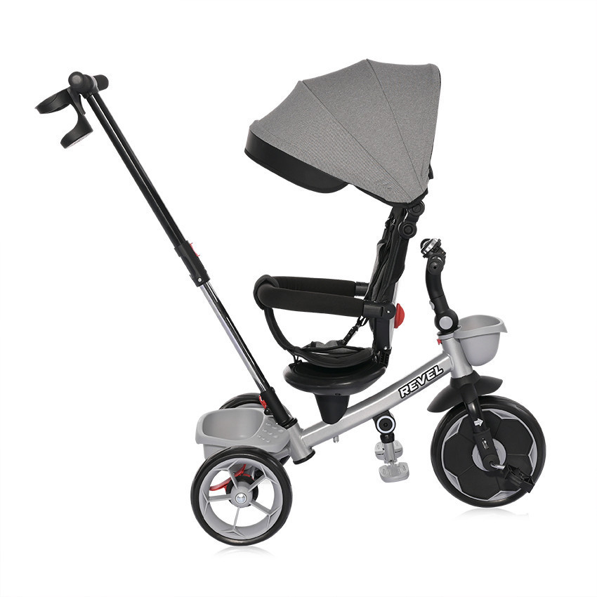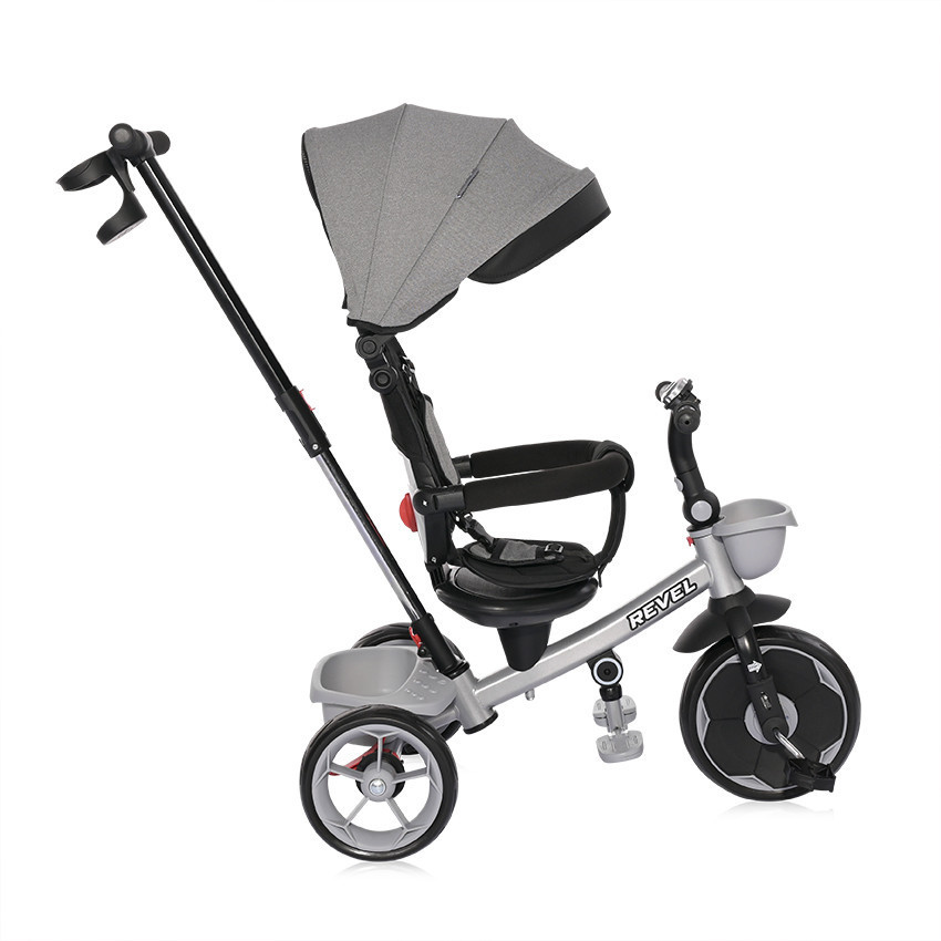 • Első időkben a szülő tudja az erre kialakított 2 magassági pozícióban állítható tolókormánnyal irányítani miközben a pici nézelődhet, majd amikor már nagyobb saját maga is hajthatja.