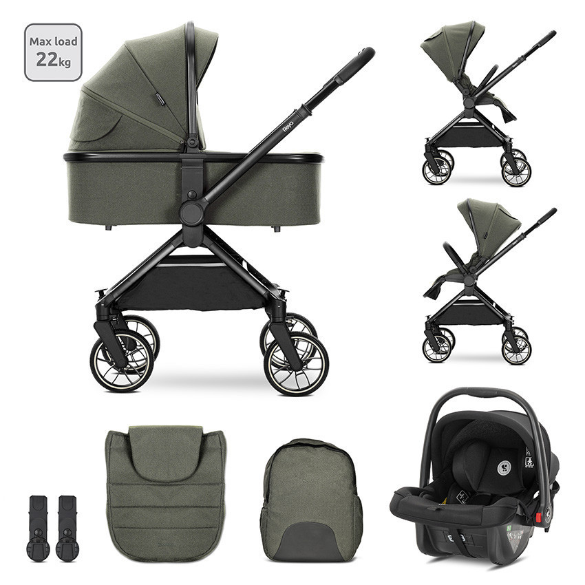 Lorelli Reya 3az1-ben multifunkciós babakocsi átfordítható tolókarral + Joy autóshordozó - Green