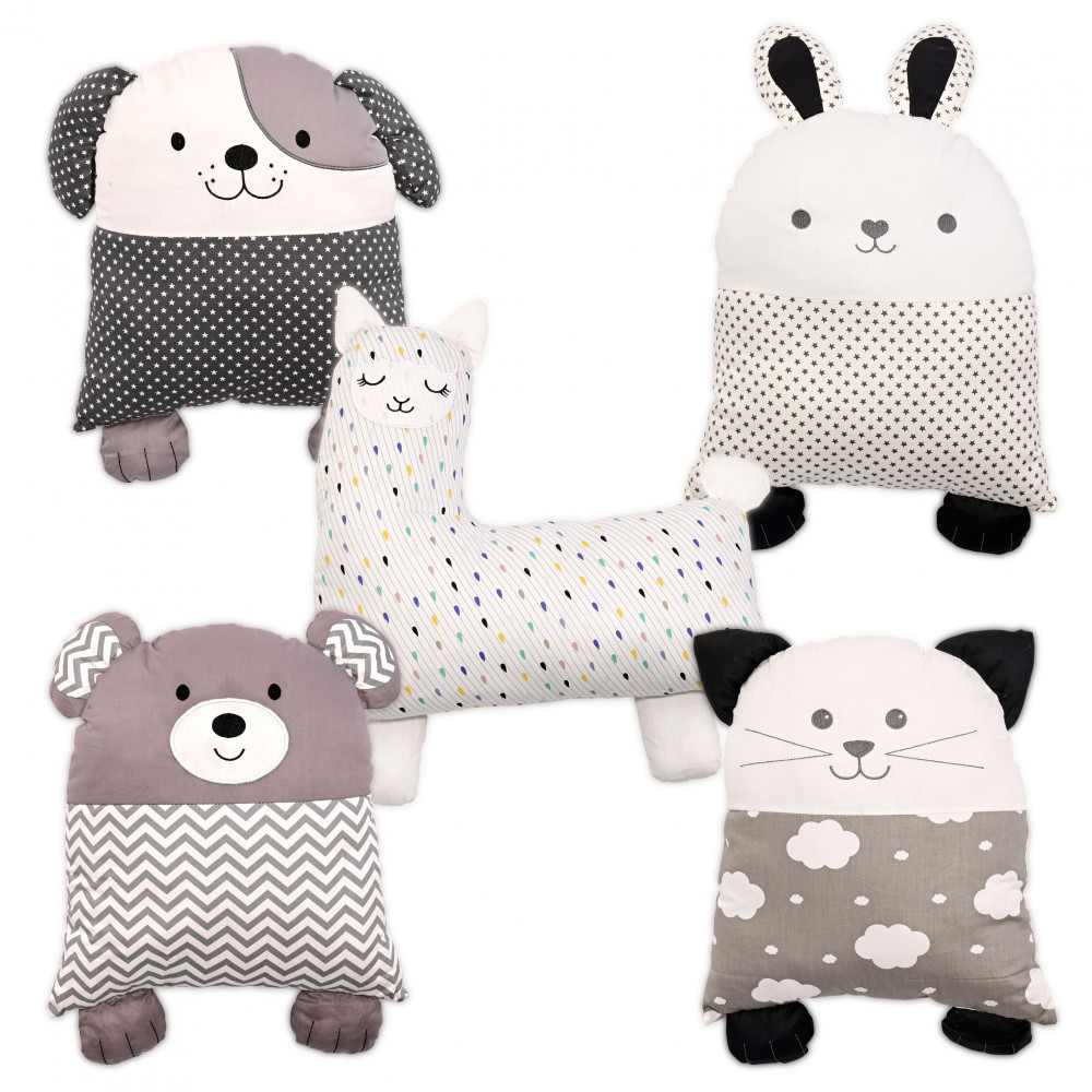 • A szett 5 db különböző mintájú párnából áll: kutyus, cica, maci, nyuszi és láma