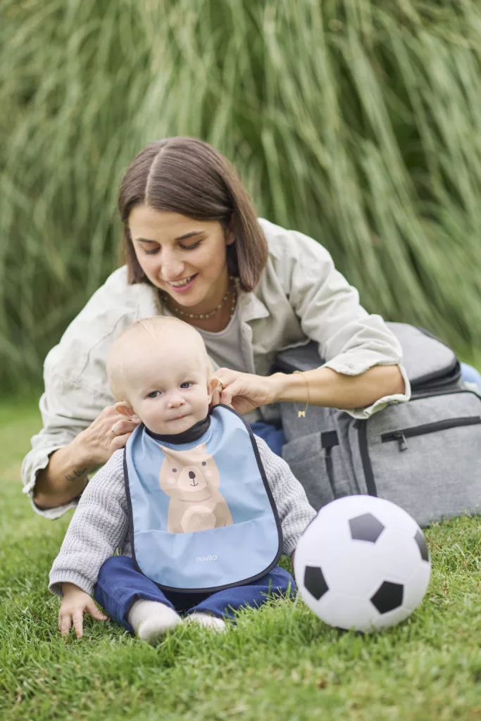 • Az előke alján kis zseb található, amely felfogja a lehulló ételt