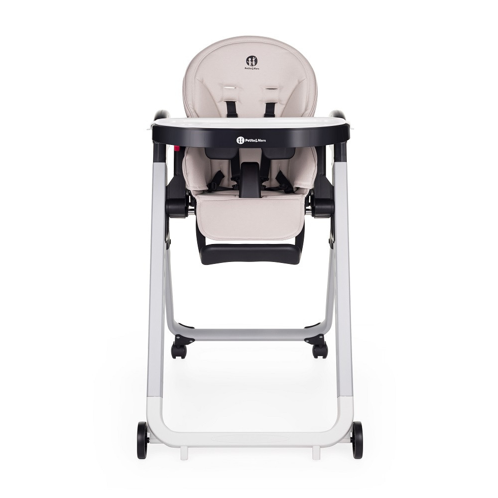 Rendkívüli kényelem a mindennapi etetés soránA Petite&Mars Tasty gyermekszék a kényelemre és funkcionalitásra tervezve. Egyszerűen beállítható a gyermek igényeihez, köszönhetően a 7 magassági állításnak, a 175 fokig dönthető háttámlának, amely ülésből fekvő pozícióba állítható, valamint az állítható lábtartónak. A szék kárpitozása tartós, sima PU anyagból készült, amely nagyon könnyen tisztítható. Nagy, állítható tálca, amely lecsatolható a székről, tökéletes helyet biztosít az étkezéshez, játékhoz vagy tanuláshoz, miközben az 5 pontos biztonsági öv megakadályozza a leesést. A gyermekszék nagyon mobilis a beépített kerekeknek köszönhetően és rendkívül kompakt, összecsukható 20 cm szélességre. Ez az étkezőszék funkcionális, biztonságos és kényelmes, így ideális választás minden gyermek számára.Jellemzők:7 magassági állítás egy kényelmes gombbal, amely lehetővé teszi a szék magasságának beállítását a gyermek és a szülő igényeihez.Állítható háttámla: 5 fokozatban dönthető háttámla, amely 175 fokig állítható ülésből fekvő pozícióba, kényelmet biztosítva a gyermeknekÁllítható lábtartó: 3 magassági pozícióban állítható lábtartó, amely tökéletesen kiegészíti a háttámla beállításátTartós anyagok: a szék PU anyagból készült, amely könnyen tisztíthatóNagy, levehető tálca: állítható tálca (2 pozícióban), amely 40 Celsius fokon mosogatógépben mosható, helyet biztosít az étkezéshez, játékhoz és tanuláshoz5 pontos biztonsági öv: maximális biztonságot biztosít és megakadályozza a gyermek leesésétMobilitás: 4 kerék van beépítve a szék lábaiba a könnyű mozgatás érdekében, ahol az első kerekek fékkel vannak ellátvaKompakt összecsukhatóság: a szék gyorsan összecsukható kompakt méretekre, ami megkönnyíti a tárolását az autóban vagy otthonAlumínium váz: erős, könnyű és tartós szerkezetGyermek kora: 6 hónapos kortól 36 hónapos korig megfelelőBiztonság: megfelel az európai biztonsági szabványnak EN 14988–2:2006+A1:2012Műszaki specifikációk:A termék méretei: 80 × 58 × 105 cmA doboz méretei: 56 × 28,5 × 83 cmA szék méretei: 27 × 24 × 45,5 cmA gyermek tálca méretei: 51,5 × 31 cmA lábtartó méretei: 25 × 5 cmMéretek fekvő helyzetben: 81,5 × 27 cmMagassági állítás: 7 pontAz első kerék átmérője: 9 cmA hátsó kerék átmérője: 4,5 cmNettó súly: 9,1 kgBruttó súly: 11,5 kgMaximális teherbírás: 15 kg