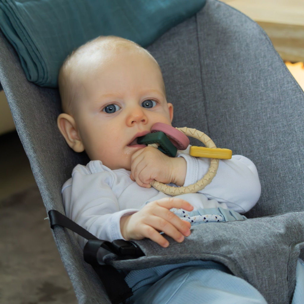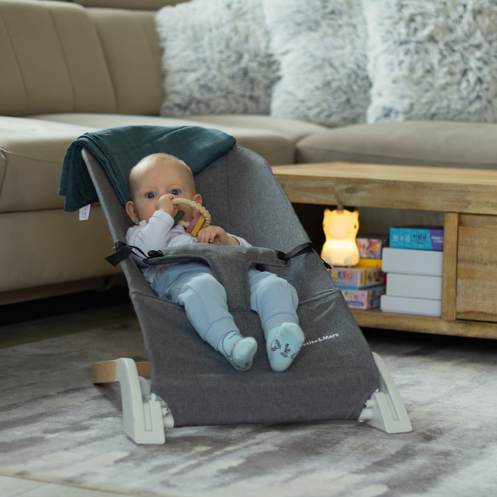 HU DescriptionMinden anyukának szüksége van egy pillanatra, amikor egyedül pihenhet. Zuhanyozzon le, szakítson időt egy ebédre vagy egy kávéra. Ha egy biztonságos helyet keres, ahová egy kis időre leteheti a babát, a Calmy pihenőszék a megfelelő. Teljesen természetes hintamozgással rendelkező pihenőszék, amely már egészen kicsi kortól kezdve serkenti a baba fejlődését. A baba ringatózással és rugdalózással ringatja a pihenőszéket, és ezek a mozdulatok elősegítik a helyes motoros készségek fejlődését. Ezenkívül a ringatás megnyugtatja a fáradt és izgatott babát, és segít neki békésen aludni.Ezenkívül a pihenőszék ergonomikus kialakítású, amely megfelelő alátámasztást biztosít a baba fejének, nyakának és gerincének.A pihenőszéket etetőszékként is használhatja az első etetések idején. Könnyen hordozható, így magával viheti a családi kirándulásokra vagy a hétvégén a nagyszülőkhöz. Ez lesz az Ön nélkülözhetetlen segítője a baba ápolásában. Jellemzők:- Modern és elegáns design- 3 pontos biztonsági öv- Bükkfa alap- Fémkeret, amely sokkal erősebb és biztonságosabb, mint a hagyományos műanyag keretek. Specifikáció:- Gyermekek számára újszülött kortól 9 hónapos korig/9 kg-ig alkalmas- Huzat: poliészter- A huzat 30°C-on mosógépben mosható- Súly: 1,9 kg- Méretek:o Szétnyitott pihenőszék méretei: 46 x 62 x 51 cm (Sz x H x M)o Háttámla hossza: 47 cmo Ülésmélység: 19 cmo A pihenőszék teljes hossza: 83 cmo Pihenőszék szélessége: 38 cm- Szabvány: EN12790Magyarországi képviselő: ags92 Kft., HU-9028 Győr, Szent Imre út 61/A⁠info@petiteetmars.com ⁠