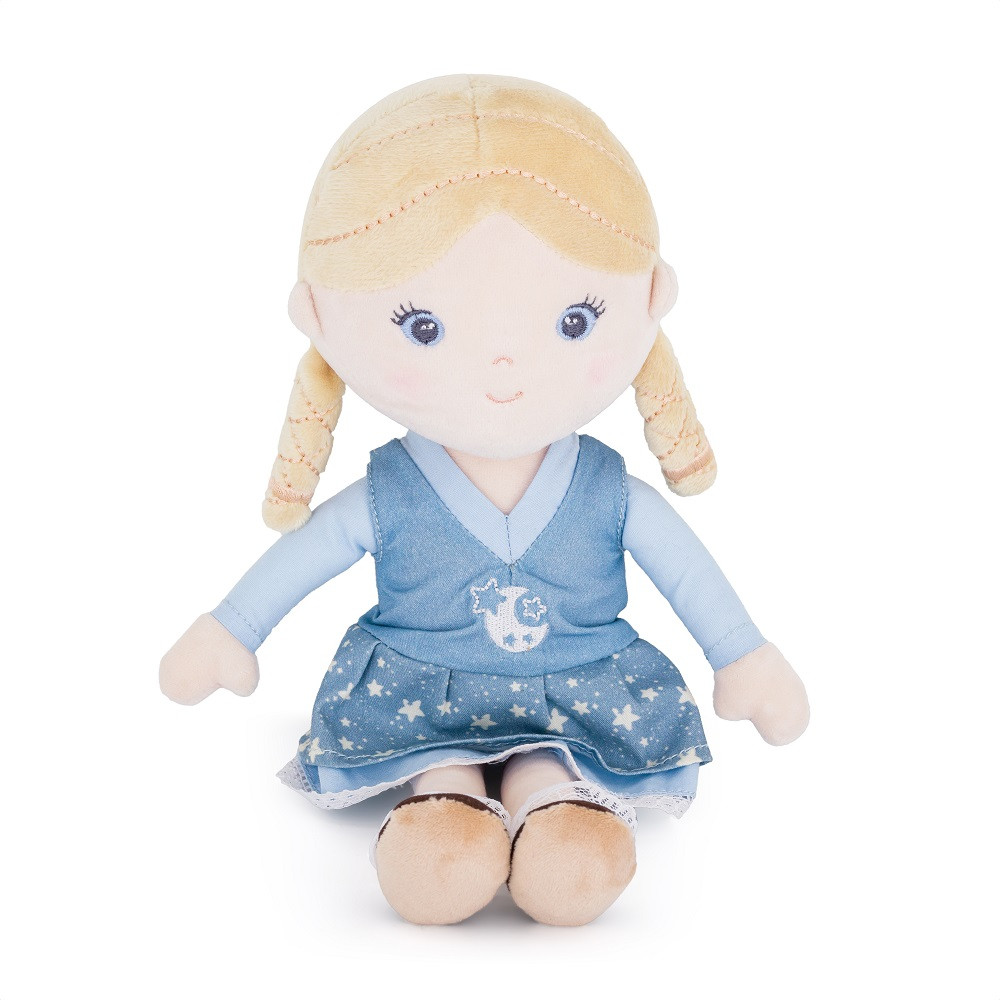 HU DescriptionA legjobb barátnő mindig melletted van!Eliska egy édes, textilbaba, amely minden kisgyermek elválaszthatatlan barátja lesz. Szeret játszani és szórakozni, és csodálatosan tud ölelni. Minden nap vidám és készen áll az új kalandokra. Éjszaka békés álmokat őriz, és biztonságérzetet ad a babának. Eliskával olyan könnyű elaludni. Romantikus lelke a természet, csillagok és a hold csodálatában nyilvánul meg.A baba nagyon kellemes anyagból készült, gyönyörű ruhával, melyet tökéletesen díszít az aranyfonat. Ha koszos lesz, egyszerűen kézzel kimosható 30°-on. A különböző formáknak és textúráknak köszönhetően ösztönzi a gyermekek képzeletét és fantáziáját, és fejleszti a kognitív készségeket.Könnyű, így a legkisebb kezek is gond nélkül meg tudják fogni, és minden kirándulásra magával viheti. Úgy döntöttünk, hogy babáinkat környezetbarát, szórakoztató felhasználási móddal ellátott dobozokba helyezzük. Minden doboz hátoldalán egy sor kiegészítő található, amelyek könnyen kivehetőek a dobozból, és már kezdődhet is a móka. Eliska erősen kötődik a természethez, és szeret az erdőben sétálni. Nyáron gyönyörű virágokat gyűjt és hallgatja a baglyok huhogását, ősszel pedig gombák után kutatva járja a ligeteket. Merüljön el a fantázia világában, és hozza ki a legtöbbet a gyönyörű csomagolású babákból. Egy gyönyörű történetet is találsz Eliskáról, amelyet lefekvés előtt elmondhat a gyermekeinek.Luna történeteAz erdő közepén egy kis házikóban élt egy Eliska nevű kislány. Szőke haja, nagy kék szeme és kíváncsi tekintete volt. A ház kicsi volt, hangulatos és az ablakain keresztül gyönyörű kilátás nyílt a csillagokkal teli égboltra. Eliska szerette nézni az éjszakai égboltot. Tele volt kis fénylő csillagokkal, amelyek minden este ugyanúgy néztek ki. De az egyik nagyobb és más volt, mint a többi. Egyszer kerek volt, néha egy tekercsre hasonlított, és néha nem lehetett látni egyáltalán. Eliska ezt szerette a legjobban, minden este alig várta, és idővel nevet is adott neki.LUNA...Egy nap Eliska elment sétálni az erdőbe. Gyönyörű napsütéses nap volt. Annyi mindent lehet felfedezni az erdőben. Eliska tűleveleket és faleveleket gyűjtött, feküdt a puha mohában, etette az állatokat és figyelte a mókusokokat. Mielőtt észbe kapott volna, az erdőt hirtelen sötétség borította be. Eliska félt a sötétben.A sötétben nem találta a hazafele vezető utat. Leült egy farönkre és sírt. Az égen megjelent Luna. Eliska megdörzsölte a szemét, és vágyakozva nézett az égre."Luna, kérlek, mutasd meg az utat hazafelé."...És Luna megvilágította az erdei ösvényt, és elvezette Eliskát a háza biztonságába...Tulajdonságok: •Könnyű baba, újszülött kortól kezdve alkalmas•Fejleszti a gyermek képességeit és képzelőerejét•Biztonságérzetet ad•Anyaga: baba: 100% poliészter, ruha: 100% pamut•Méret: 35 cm•Kézzel mosható 30°-onMagyarországi képviselő: ags92 Kft., HU-9028 Győr, Szent Imre út 61/Ainfo@petiteetmars.com