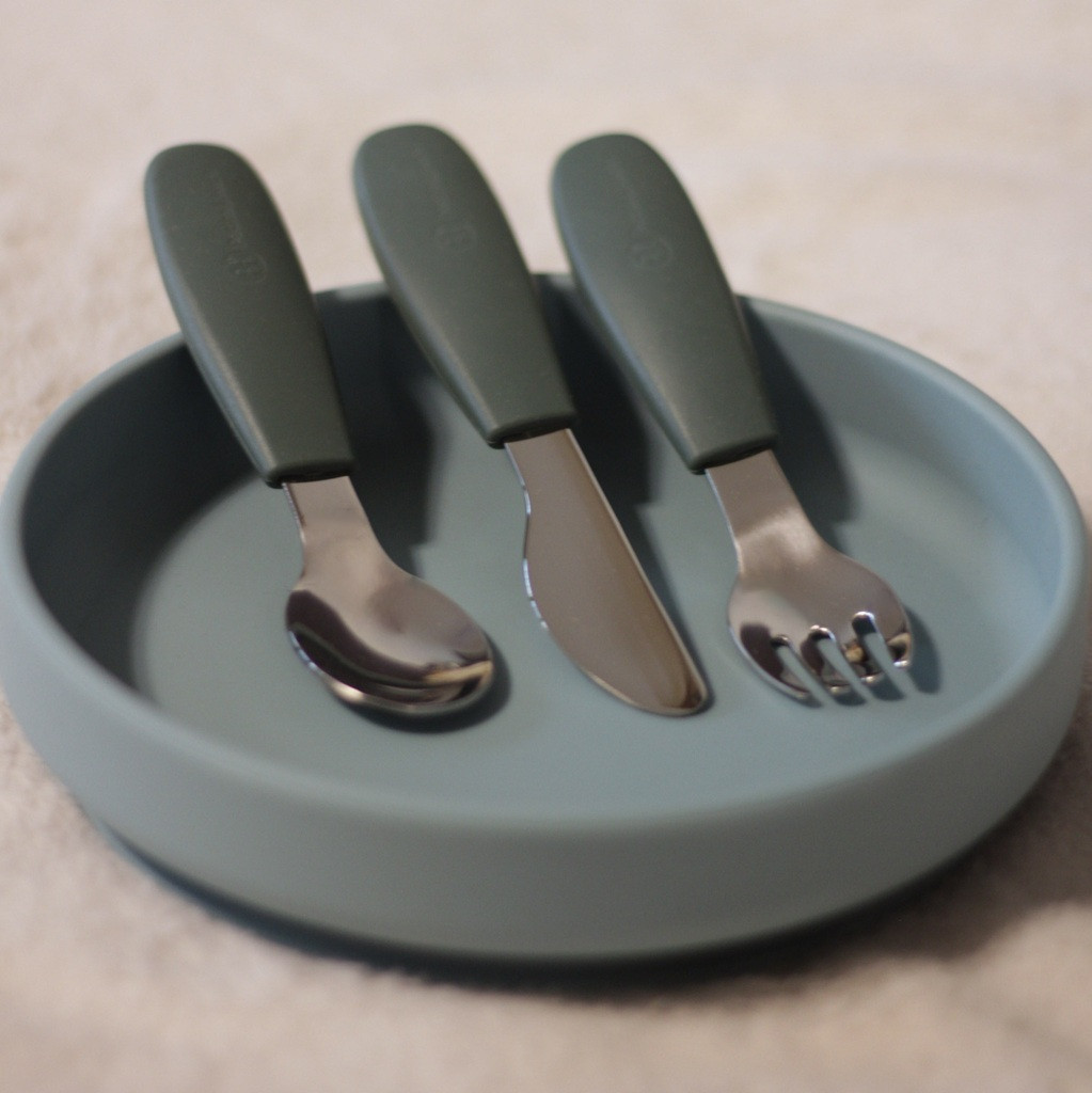 HU DescriptionTAKE&MATCH sorozatKombinálja saját ízlése szerintVálassza ki a gyermekének szükséges termékeket, és kombinálja őket kedvenc színeiben. A TAKE&MATCH kollekció stílusos, gondosan kiválasztott színekben kapható, amelyek tökéletesen kiegészítik egymást. Az összes elemet kombinálhatja, hogy biztonságos és praktikus étkezőgarnitúrát hozzon létre gyermeke számára - pontosan az Ön ízlése szerint. Ez a sorozat nemcsak egyszerűvé, hanem vizuálisan is kellemes és szórakoztató élménnyé teszi az etetést.Biztonságos, kényelmes és stílusos első evőeszköz a kis babakezek számáraA PETITE&MARS evőeszközök a funkcionalitás, a biztonság és a stílus ideális kombinációja - gyermekeknek 12 hónapos kortól. A készlet kanalat, villát és kést tartalmaz, hogy a baba megtanuljon önállóan enni - napról napra, étkezésről étkezésre.A funkcionális részek kiváló minőségű rozsdamentes acélból készülnek, a fogantyúk ergonomikusak és puha, élelmiszerekkel való érintkezésre alkalmas szilikonnal vannak bevonva - ideális a gyermekkéz számára. Ez kényelmes és biztonságos fogást biztosít, és elősegíti a helyes étkezési szokásokat.A lekerekített élek növelik a biztonságot, a modern design pedig szépen illeszkedik a többi gyermek étkészlethez.Főbb jellemzők:•Teljes készlet - 3 részből áll: kanál, villa és gyermekbiztos kés.•Ideális az önálló étkezéshez - méretben és alakban igazodik a kis kezekhez•Rozsdamentes acél + szilikon - higiénikus, tartós és gyermekek számára is alkalmas•Csúszásmentes ergonomikus fogantyúk - kisgyermekek számára könnyen megfogható•Lekerekített élek - biztonságos és kíméletes a mindennapi használathoz•Modern minimalista megjelenés - tökéletesen illeszkedik a gyermek étkészlethez•Könnyen tisztítható - mosogatógépben moshatóSpecifikáció:Anyagok: rozsdamentes acél (funkcionális részek), élelmiszeripari minőségű szilikon (fogantyúk).BPA- és ftalátmentesAjánlott életkor: 12 hónapos kortólMéretek: kanál és villa - 13 × 3 cm, kés - 14 × 2,5 cmA csomag tartalma: 1 kanál, 1 villa, 1 késFIGYELMEZTETÉSA gyermek biztonsága és egészsége érdekében az első használat előtt távolítson el minden csomagolást és rögzítőelemet. Ne hagyja a gyermeket felügyelet nélkül evés közben. Tálalás előtt mindig ellenőrizze az étel vagy ital hőmérsékletét. Kerülje az éles tárgyakkal való érintkezést, amelyek károsíthatják a termék felületét. Csak felnőtt felügyelete mellett használja. Minden használat előtt ellenőrizze a terméket. Dobja ki a terméket az anyag sérülésének vagy gyengülésének első jeleinél. Őrizze meg a termékinformációkat a későbbi használatra.A forgalmazó címe: ags92 s.r.o., Drahobejlova 2515/18, 190 00 Prága, Cseh Köztársaságinfo@petiteetmars.com