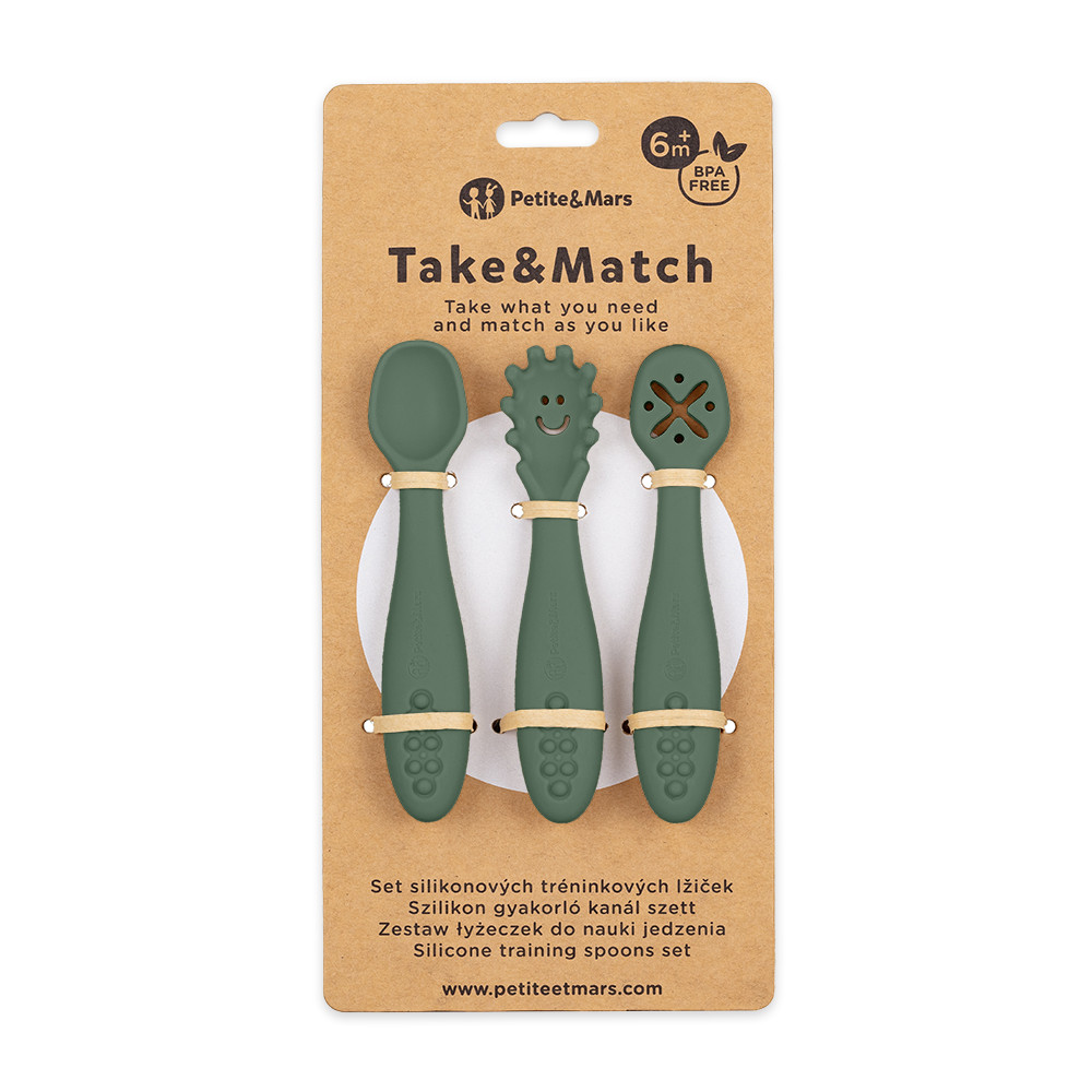 PETITE&MARS Szilikon gyakorló kanál szett 3 db Take&Match Misty Green 6m+