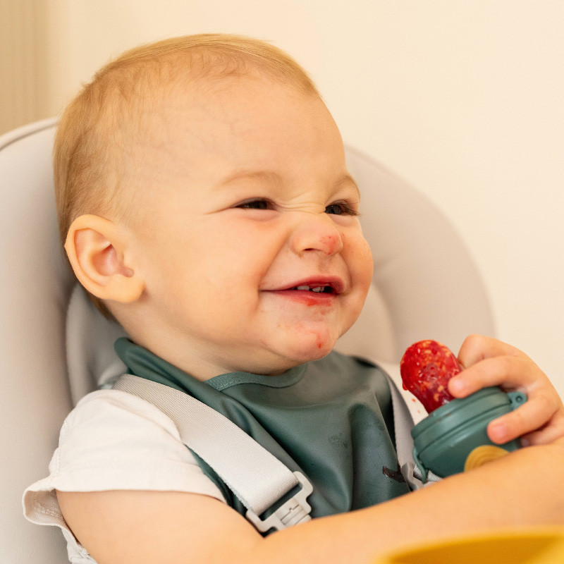 Biztonságos szilárd ételek a baba számáraA Fruzi az ideális etető cumi, amely segít a babának biztonságosan megkóstolni a szilárd ételeket, miközben enyhíti a fogínyfájdalmat. Tökéletes a babák számára 6 hónapos kortól. 100% biztonságos szilikonból készült. A Fruzi lehetővé teszi, hogy gyümölcsöt, zöldséget vagy főtt ételt a csecsemők számára legmegfelelőbb formában tálaljon. A szilikon hegyén lévő kis nyílások lehetővé teszik, hogy a kis adagok ellenőrzött módon áthaladjanak az ételből, csökkentve a nagy darabok lenyelésének kockázatát és biztosítva a biztonságos táplálást. Ergonomikus kialakításának és intelligens funkcionalitásának köszönhetően a Fruzi nem csupán egy etetőeszköz, hanem egy nélkülözhetetlen rágóka is, amely enyhülést hoz a fájó ínyre. Ideális segítség az ételek bevezetéséhez 6 hónapos kortól. Főbb jellemzők:·A szilárd ételek biztonságos bevezetése - segít a babáknak felfedezni az új ízeket és textúrákat fulladás veszélye nélkül·2in1: etető cumi és rágóka - ideális a fogzás idején az íny megnyugtatására.·Puha szilikon hegy - kíméletes az ínyhez, ideális az érzékeny területek masszírozásához·Kis nyílások - lehetővé teszi a gyümölcslevek és a lágy pürék átjutását nagyobb darabok nélkül·Védőfedél - higiénikus tárolást biztosít otthon és útközben is·Ergonomikus fogantyú - könnyen megfogható a kisbabák ujjai számára·Könnyen nyitható és zárható - praktikus pattintós zár a gyors utántöltéshezSpecifikáció:Anyag: 1 db: SzilikonBPA-mentesAjánlott életkor: 6 hónapos kortólMéretek: 12 × 6 × 4 cmA csomag tartalma: etető cumi szilikonheggyel + védőfedélFIGYELMEZTETÉS!Ez a termék nem játék. A baba biztonsága és egészsége érdekében az első használat előtt távolítsa el a csomagolás minden részét és a rögzítőelemeket. Kerülje az éles tárgyakkal való érintkezést, amelyek károsíthatják a termék felületét. A szilikon tartály elszíneződhet, de ez nem befolyásolja a funkcióját. Mindig felnőtt felügyelete mellett használja. Minden használat előtt ellenőrizze a terméket. Tartsa távol a tűztől. A terméket az anyag sérülésének vagy gyengülésének első jelére dobja ki. Őrizze meg a csomagolást és a termékinformációkat a későbbi használatra.A forgalmazó címe: ags92 s.r.o., Drahobejlova 2515/18, 190 00 Prága, Csehországinfo@petiteetmars.com
