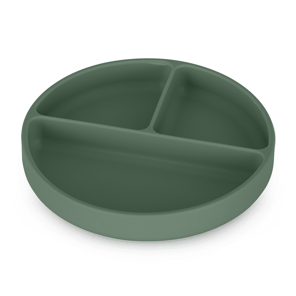 PETITE&MARS Szilikon osztott tányér, kerek Take&Match Misty Green 6m+