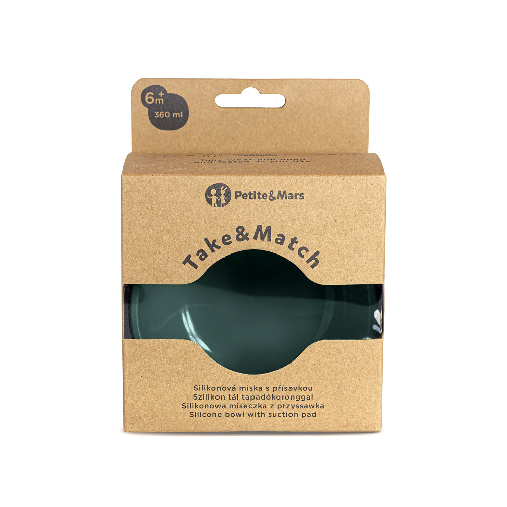 PETITE&MARS Szilikon tál tapadókoronggal TAKE&MATCH Misty Green 6m+