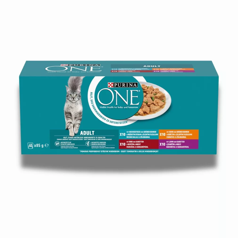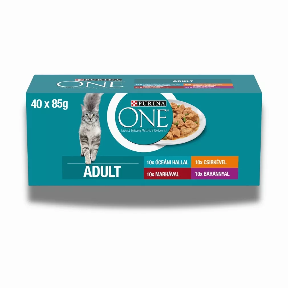 Purina One Adult alutasakos macskaeledel csirkével, marhával, báránnyal és tengeri hallal szószban (40x85 g)