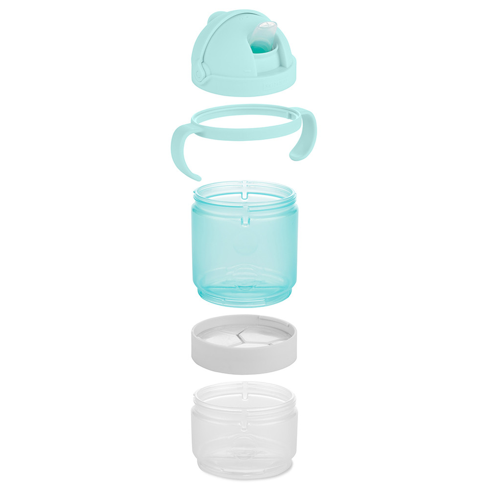 Ez a praktikus 5 részes étel- és italkészlet csecsemőknek és kisgyermekeknek különleges tervezésű, hogy egymásba helyezhető legyen, így alkalmazkodik változó igényeihez. Ezzel a készlettel a gyerekek otthon és útközben is ihatnak és nassolhatnak. A két kompatibilis, cserélhető, forgatható fedél/tető, két tárolóedény és az opcionális fogantyú segítségével a készlet lehetővé teszi az egyes komponensek külön-külön történő használatát vagy egymásra helyezését. Töltsd meg őket gabonapehellyel, keksszel, gyümölccsel, vízzel, gyümölcslével és más kedvenc ételekkel, és indulhat a világba.Jellemzők:5 részes egymásba helyezhető készlet2 cserélhető fedél különböző funkciókkal: billenő itatófedél, amely higiénikusan tiszta tartja a szájat, és egy snack fedél rugalmas lamellákkal, amelyek bent tartják az ételt, de kívülről hozzáférhetőek a nassolók számára2 tárolóedény: nagy (300 ml) és közepes (180 ml)az opcionális fogantyút a választott edényre lehet használnikönnyen elfér minden táska és hátizsák zsebébenBPA-mentes és mosogatógépben moshatóMéretek: 11,43 × 9,14 × 18,80 cm. Anyag: 95% PP, 3% szilikon, 2% TPE. Gondozás: Mosogatógépben mosható (csak a felső kosárban); ne tegye mikrohullámú sütőbe.