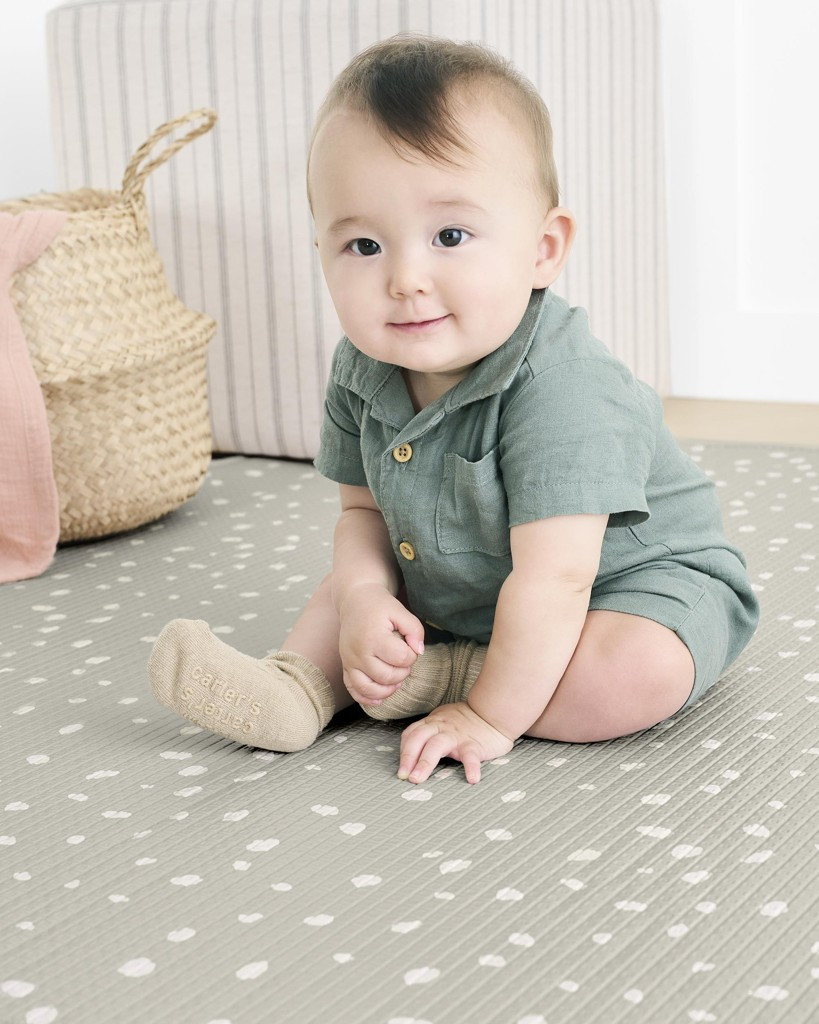 Kétoldalas játszószőnyeg úgy van kialakítva, hogy megkétszerezzea stílusos felhasználás lehetőségeit. Teljesen polimermentes szőnyeg, amely könnyentisztán tartható, helyet biztosít a játékhoz a lakás bármely részében,legyen az a gyerekszoba vagy a nappali. A szőnyeget egyszerűenfeltekerheti és könnyű áthelyezni vagy tárolni.Jellemzők:0 hónapos kortól ajánlottPVC-mentesPU habMéretek: 218 cm x 132 cm