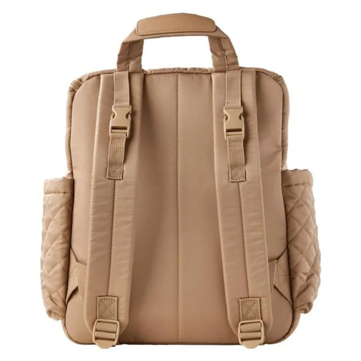 Ez a könnyű és stílusosan steppelt hátizsák kényelmet és egyben rendkívüli funkcionalitást kínál. A fő nagy rekesz extra széles nyílással megkönnyíti az összepakolást és a szükséges dolgok megtalálását, az uzsonnától, pelenkától kezdve a tartalék ruháig.A hátizsák tartalmaz egy kisebb elülső rekeszt is, ahol további 2 különálló többcélú táska található, így további tárolóhelyet kínál.A hátizsákban minden kéznél marad a rugalmas belső zsebeknek és a szigetelt oldalsó palackzsebeknek köszönhetően. A belső zseb a pelenkázó alátét számára utazáskor is használható, valamint laptop rekeszként is.Tulajdonságok:az elülső rész könnyű hozzáférést biztosít két extra kisebb táskához – az egyik ugyanolyan dizájnnal, mint a hátizsák, amelybe akár 2 palack is elfér, a másik hálós, ruhák és apróságok számára alkalmasextra széles dupla cipzár és könnyen hozzáférhető fő rekeszkét oldalsó szigetelt palackzsebrugalmas belső zsebek és mobilzsebállítható párnázott hátizsákpántokkönnyen megfogható felső fogantyúméretben megfelelő laptop számára istartalmaz babakocsi pántokattartalmaz párnázott pelenkázó alátétetA termék méretei: 41 cm x 20 cm x 36 cmA kisebb táskák méretei: 13 × 5 × 20 cmÁpolás: tisztítsa nedves ruhával