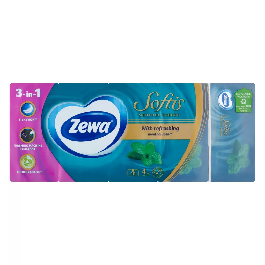 Vélemények Zewa Softis Menthol Breeze illatosított papír zsebkendő 4 rétegű (10x9 db)