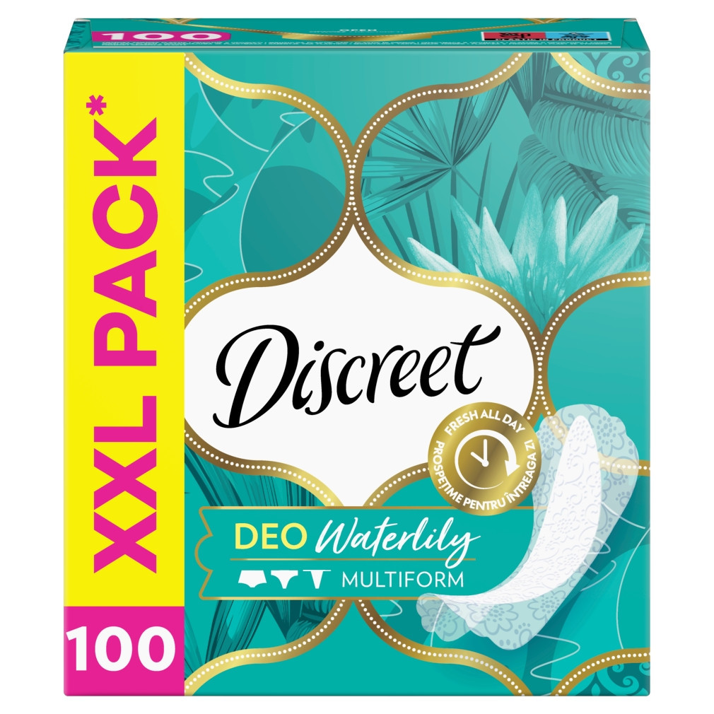 A Discreet Multiform Waterlilly tisztasági betét segít, hogy bármilyen stílusú fehérneműben frissnek és gyönyörűnek érezhesd magad egész nap. A tisztasági betét lehetővé teszi az intim bőrfelületek természetes légzését, és akár 12 órán át tartó frissességet és kényelmet nyújt. Szinte észrevehetetlen vékonyságú, multiform kialakításának köszönhetően pedig bármely típusú fehérneműhöz illeszkedik. Kifejezetten friss és nőies, jellegzetes vízililiom illattal. Bármit hozzon is a nap, ezzel a tisztasági betéttel biztosan sikerre viszed.