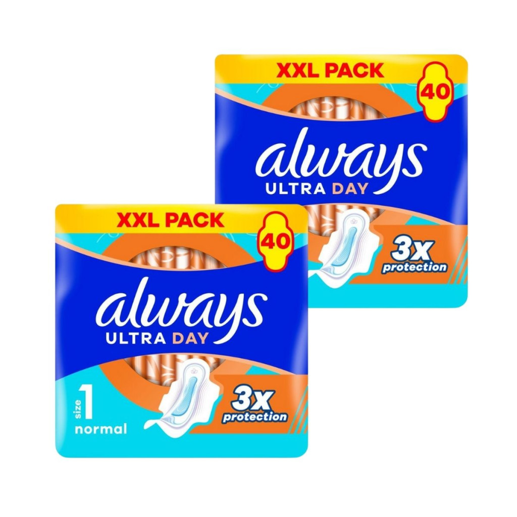 „Ne érd be kevesebbel, válaszd a 3x-os védelmet nyújtó, 1-es méretű ALWAYS Ultra Day Normal szárnyas egészségügyi betétet! A nedvszívó és gyengéd fedőréteggel rendelkező Always betét InstantDry technológiájának köszönhetően másodpercek alatt felszívja a nedvességet, a LeakGuard és OdorLock technológia pedig segít megelőzni a szivárgást és a kellemetlen szagokat. Az egyedülálló ComfortLock szárnyakat úgy tervezték, hogy bármilyen típusú fehérneműhöz remekül illeszkedjenek. A fokozott éjszakai védelem érdekében próbáld ki a különböző méretekben kapható Always Night betétet! Az Always Ultra egészségügyi betétek a Skin Health Alliance bőrgyógyászati jóváhagyásával rendelkeznek.