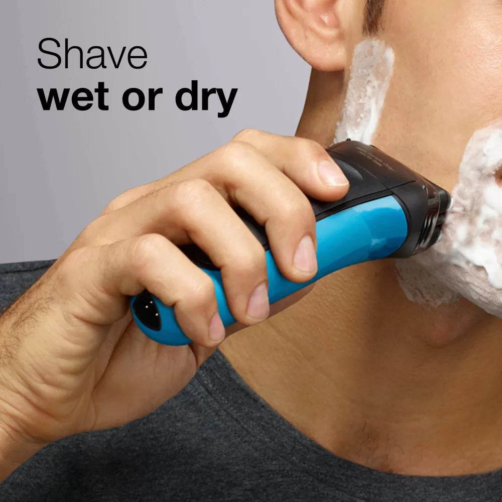 A Braun Series 3 borotva természetesen teljesen szárazon is használható, de ugyanolyan jól működik vízzel, habbal vagy géllel is.