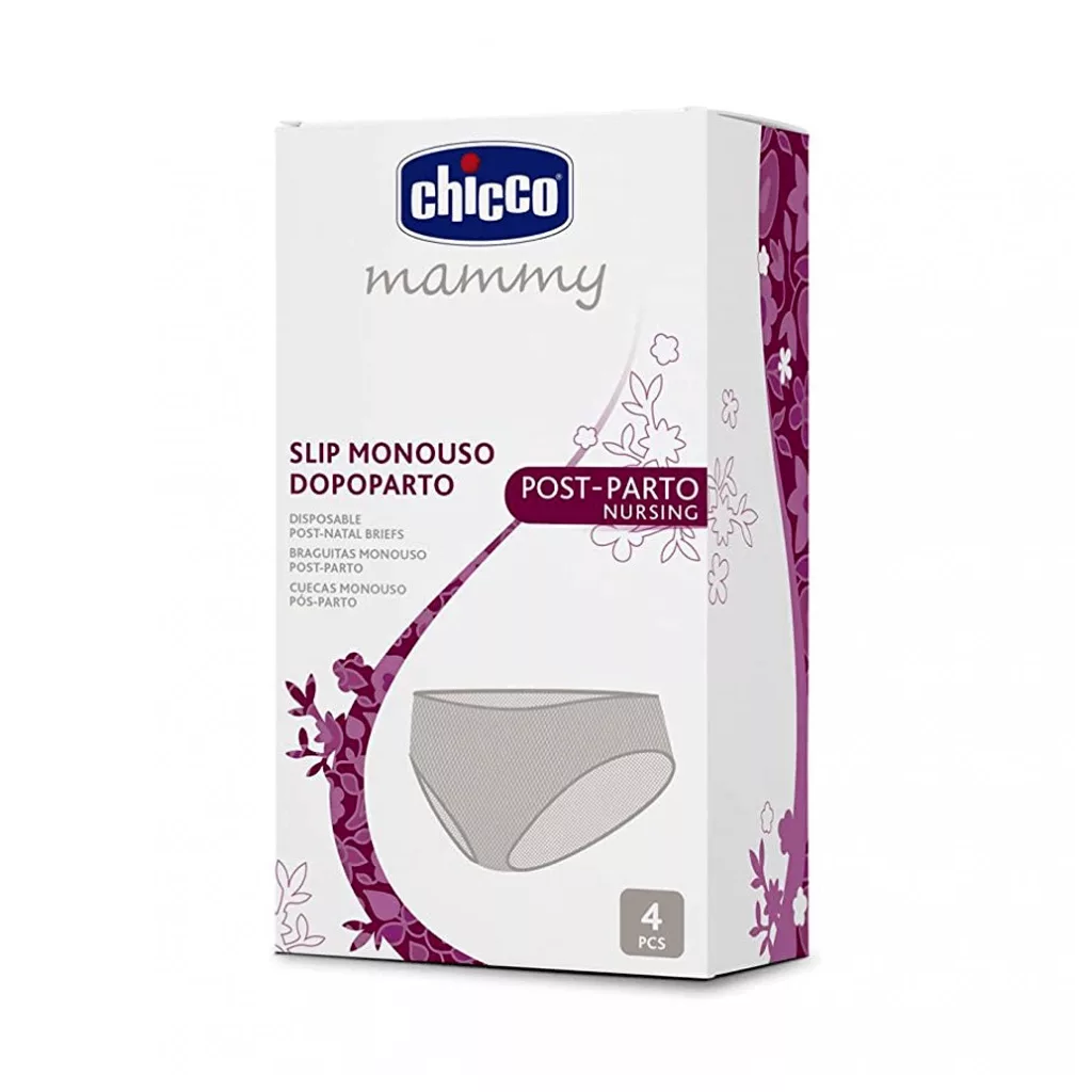 A Chicco eldobható alsó ideális a kórházban és az otthon eltöltött pár napban. A bugyi eldobható, és kényelmes, rugalmas anyagból készül, amely jól szellőzik. Közepes méret, azaz 42-44-es a vékony és normál testlakatú nőknek ajánlott. A nagy méret, azaz 46-48-as az alkatilag eleve testesebb, combosabb nőknek ajánlott. Körülbelül 8 db eldobható bugyi javasolt az első napokhoz hüvelyi szülés esetén.