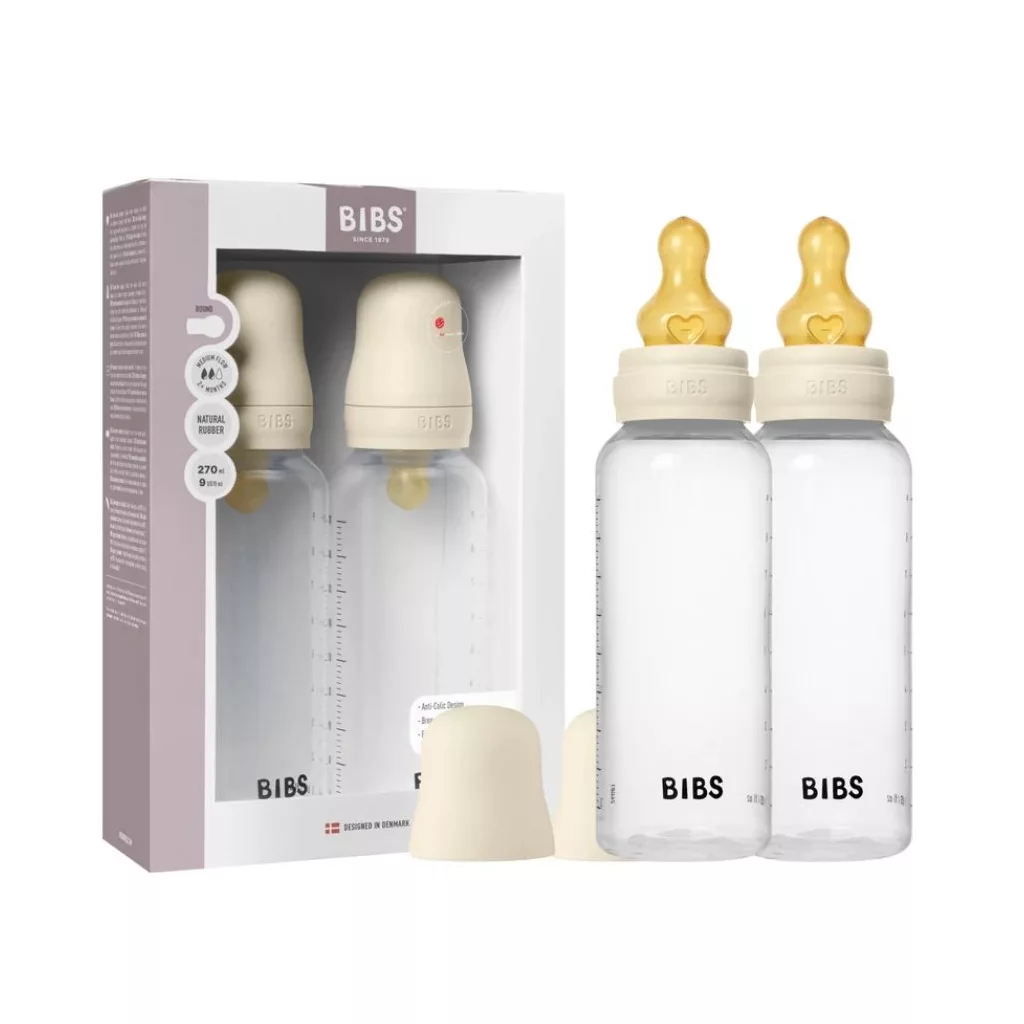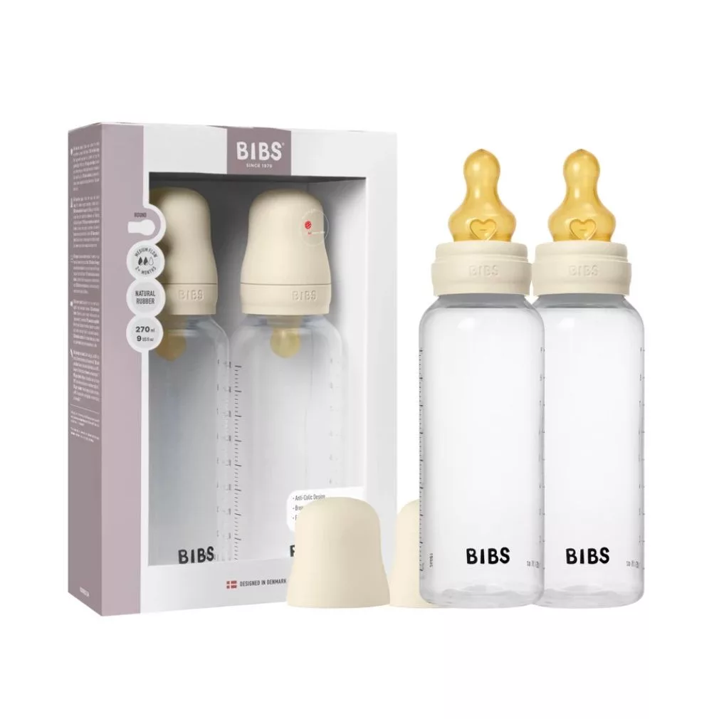 Bibs cseperedő cumisüveg készlet 2x270 ml - natúr kaucsuk cumifejjel, lassú, közepes és gyors áramlású cumifejjel - krémfehér leírása