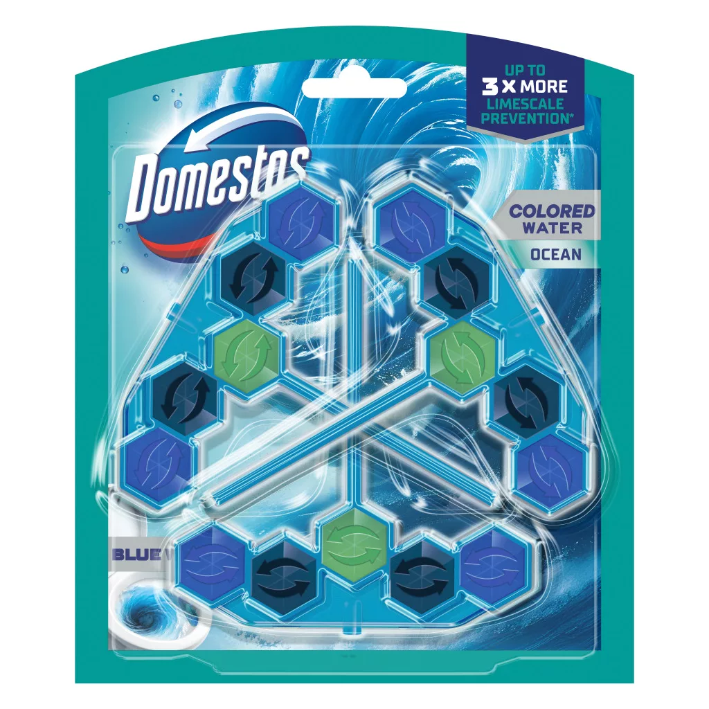 A Domestos Power5 BlueWater WC-frissítő blokkok kiemelt segítséget nyújtanak a vízkőlerakódás elleni küzdelemben, emellett mindennapos frissességet biztosítanak.