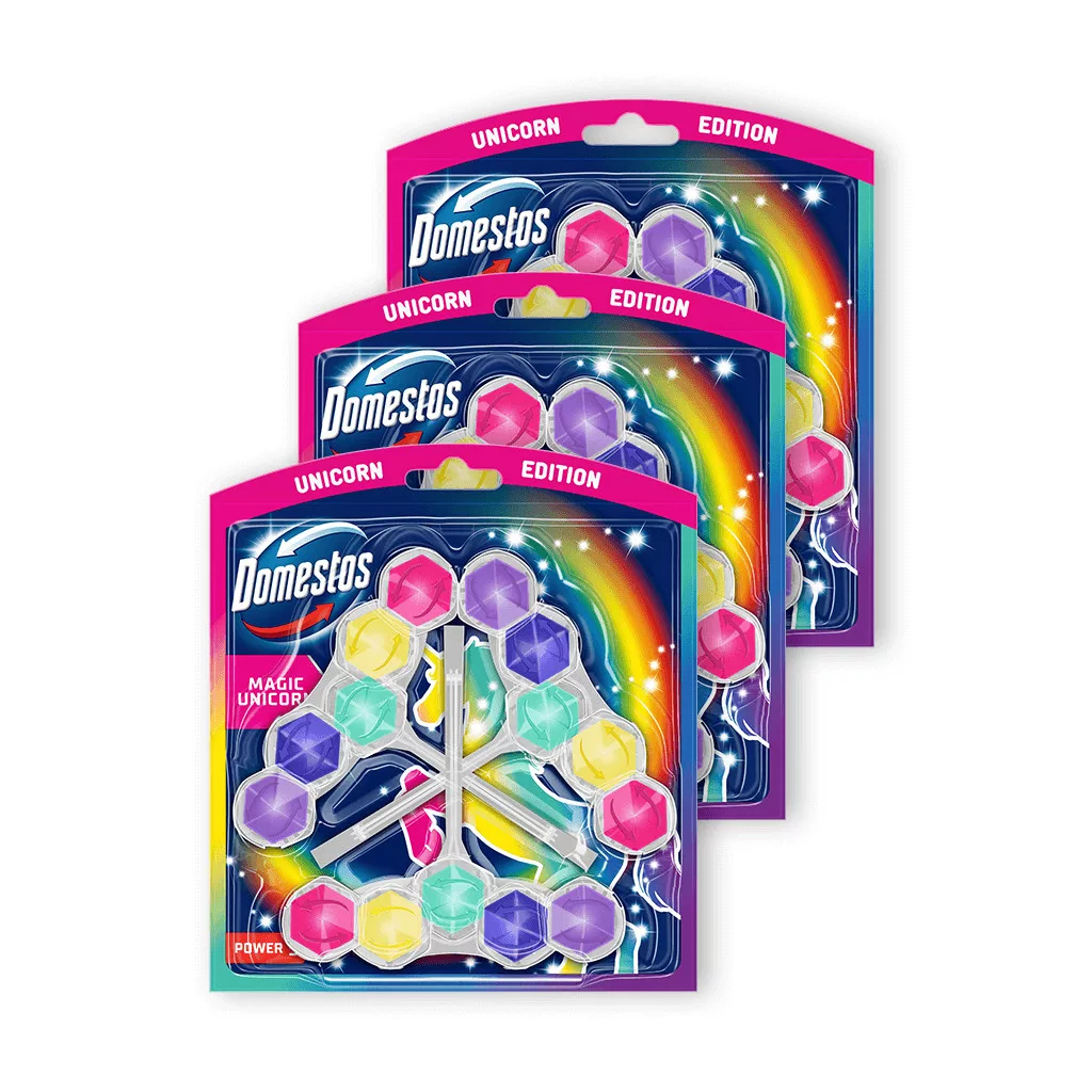 Domestos Power5 WC frissítő blokk, Magic Unicorn (3x3x50 g) leírása