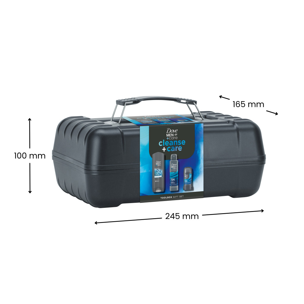 A Dove Men+Care Clean Comfort ajándékcsomag szerszámosládával ideális választás azoknak a férfiaknak, akik értékelik a praktikumot és a minőségi ápolást egyaránt.