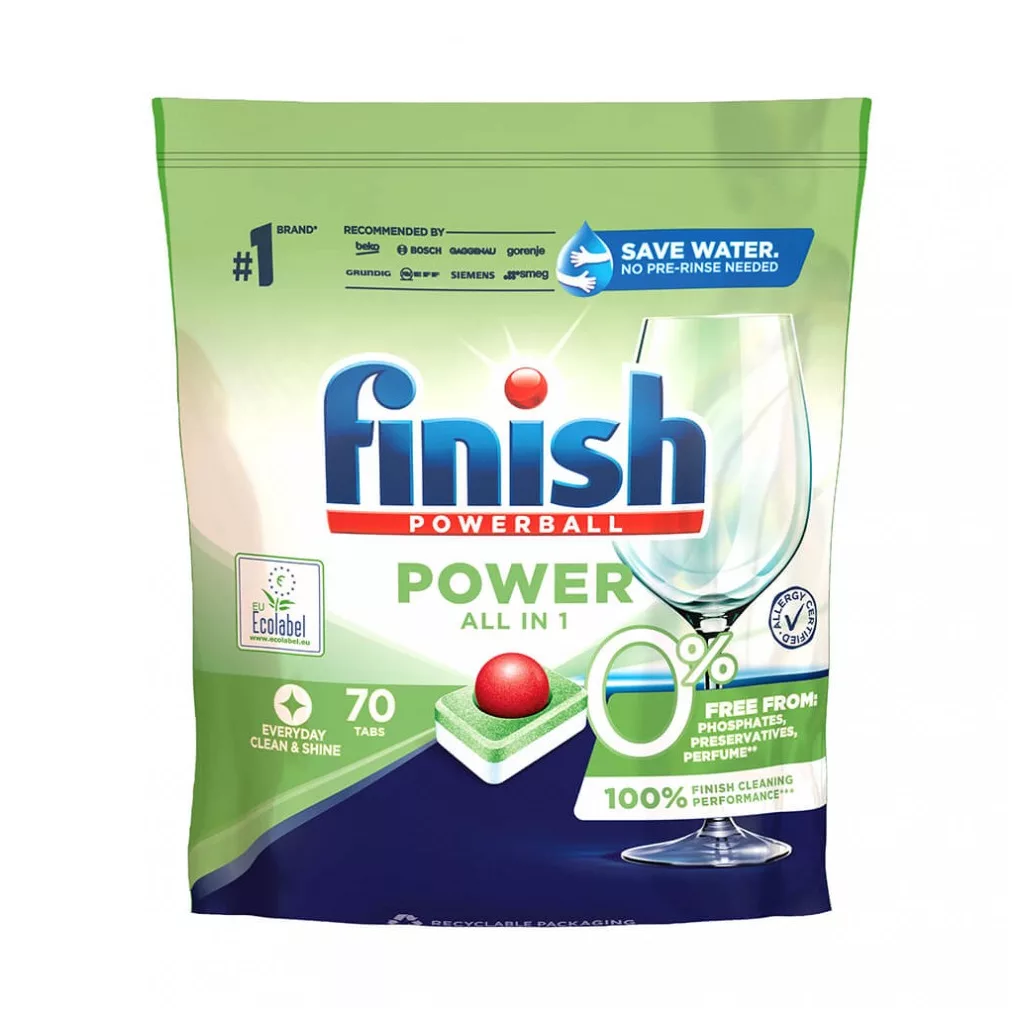 A Finish 0% a Finish All-in-One Max tisztítási hatékonyságának 100%-át biztosítja, ugyanakkor mentes mindentől: foszfáttól, illatanyagoktól és tartósítószerektől.* *A termék nyomokban foszfátokat és tartósítószereket tartalmazhat. Használat: A legjobb eredmények eléréséhez a tablettát száraz adagolóba helyezd. Ne csomagold ki a tablettát. Ha a tabletta nem illik a rekeszbe, további részletekért fordulj a mosogatógép gyártójához vagy olvasd el a használati útmutatót. Rövid mosási programokon a legjobb eredmények eléréséhez helyezd a Finish All-in-1 gépi mosogatótablettát a mosogatógép aljára, a szűrő mellé. Használat után mindig zárd vissza a csomagolást. A beépített só funkció lágy/közepesen kemény, max, 26ºe (21°dH) keménységű vízben hatékony. A legjobb eredmények eléréséhez használd az 50/55°C-os vagy automata programokat. Fertőtlenítő tartályokhoz csomagolás csak teljes kiürülés után hasznosítható újra! A termék nem védi meg az edényeket a sérülésektől és nem javítja ki a sérült edényeket. Használat előtt olvasd el, használat közben pedig tartsd be a termék használati útmutatóját és a figyelmeztetéseket. Figyelem! Súlyos szemirritációt okoz. Gyermekektől elzárva tartandó. Szembe kerülés esetén: Több percig tartó óvatos öblítés vízzel. Adott esetben a kontaktlencsék eltávolítása, ha könnyen megoldható. Ha a szemirritáció nem múlik el: orvosi ellátást kell kérni. Orvosi tanácsadás esetén tartsd kéznél a termék csomagolását vagy címkéjét.