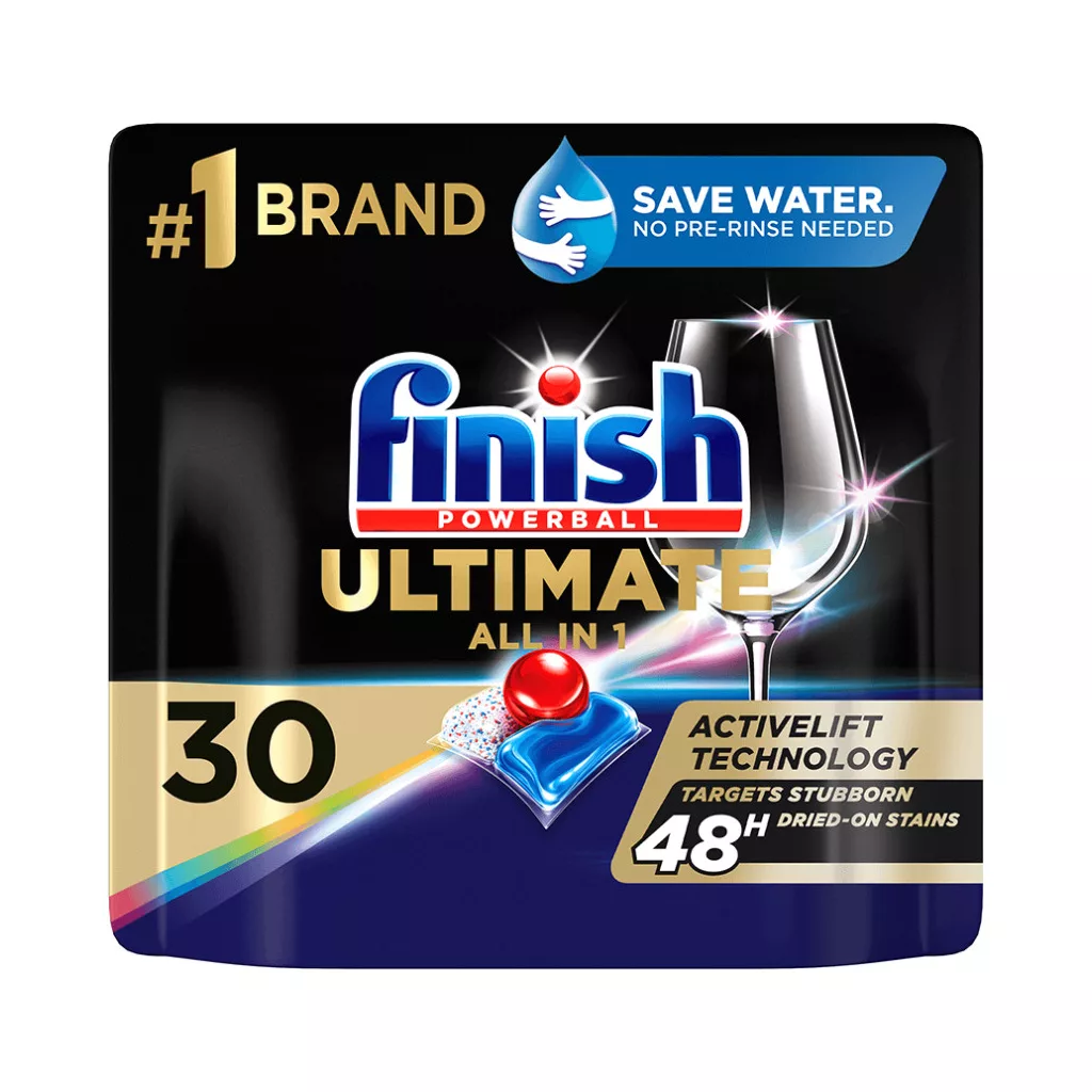 Finish Ultimate a makulátlanul tiszta és csillogó edényekért már az első használattól kezdve, minden alkalommal. Az ACTIVELIFT TECHNOLOGY formulának köszönhetően, hatékonyan távolítja el a legmakacsabb ételmaradékokat is akár 48 óra elteltével, előáztatás nélkül. A kapszula védi és tisztán tartja az üvegedényeket és evőeszközöket is, megőrizve csillogásukat minden mosogatás után. A leghatékonyabb teljesítményű kapszulánk, amely átlagosan 15%-kal kevesebb vegyi anyagot tartalmaz, mint a Finish Power tabletta.