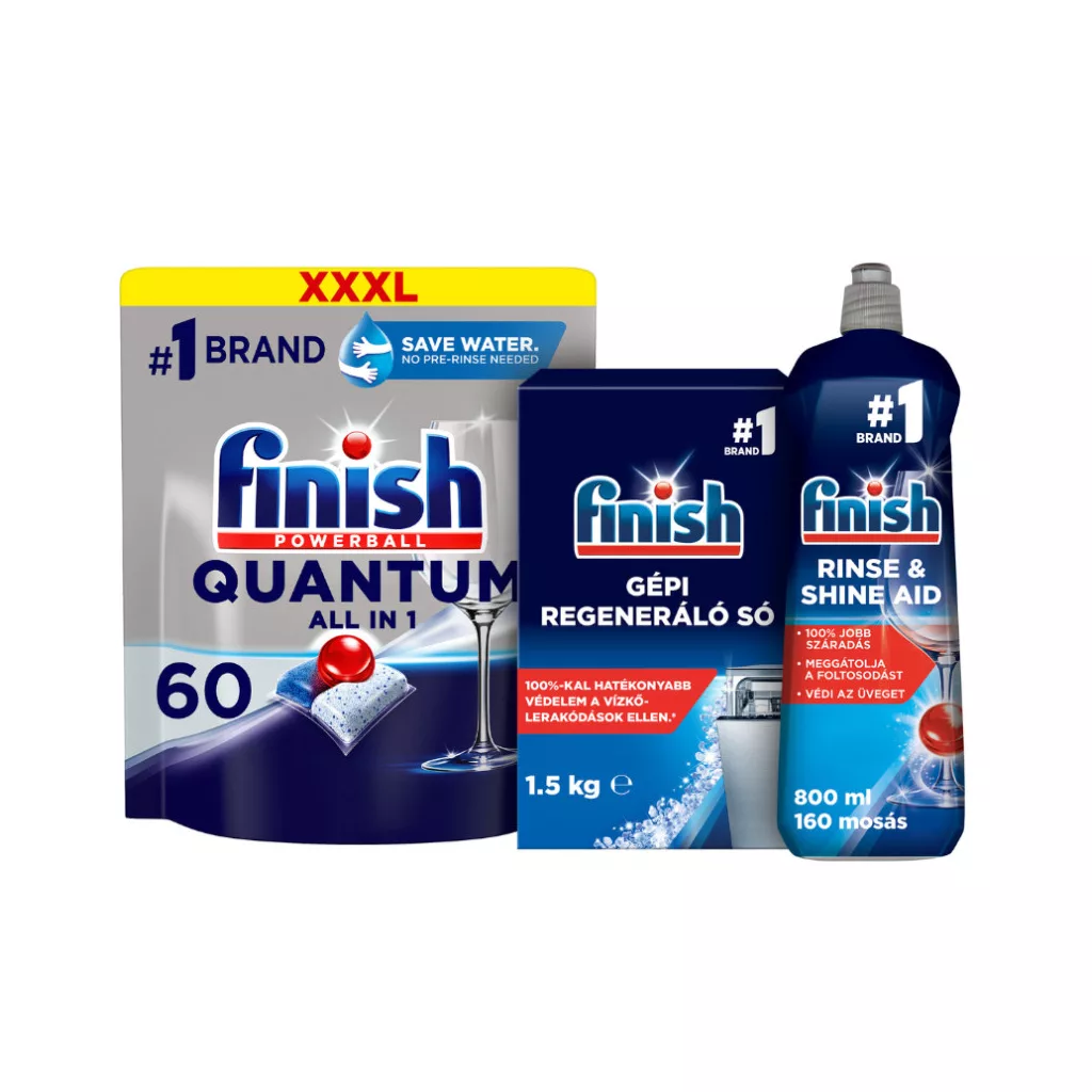 Vélemények Finish Quantum mosogatógép kapszula kezdőcsomag 60 kapszulával, öblítővel és sóval