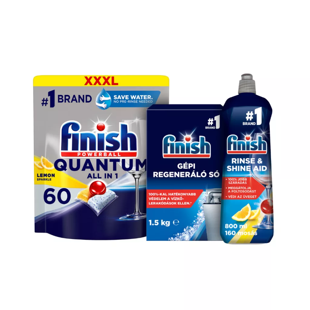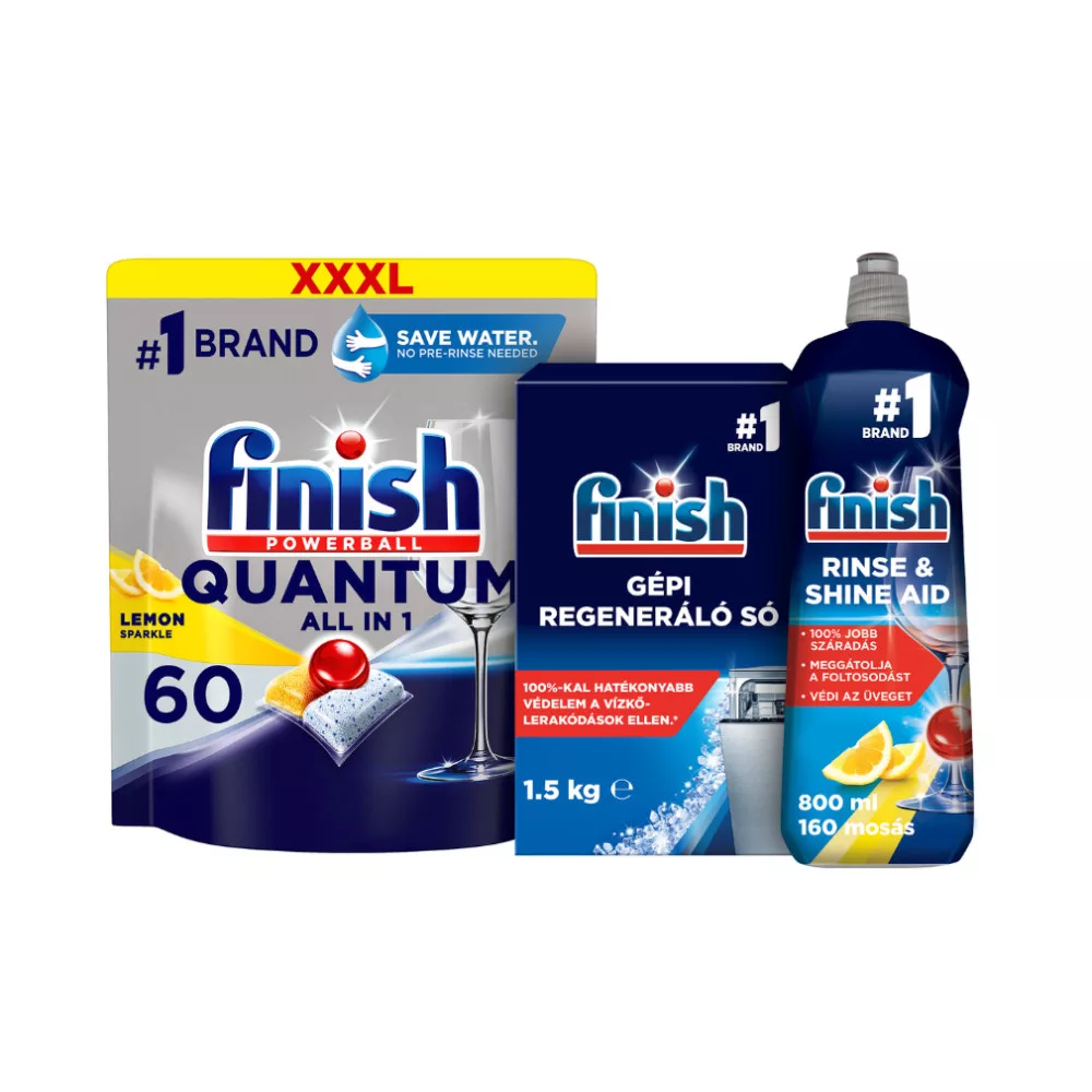 Vélemények Finish Quantum mosogatógép kapszula citromos kezdőcsomag 60 kapszulával, öblítővel és sóval