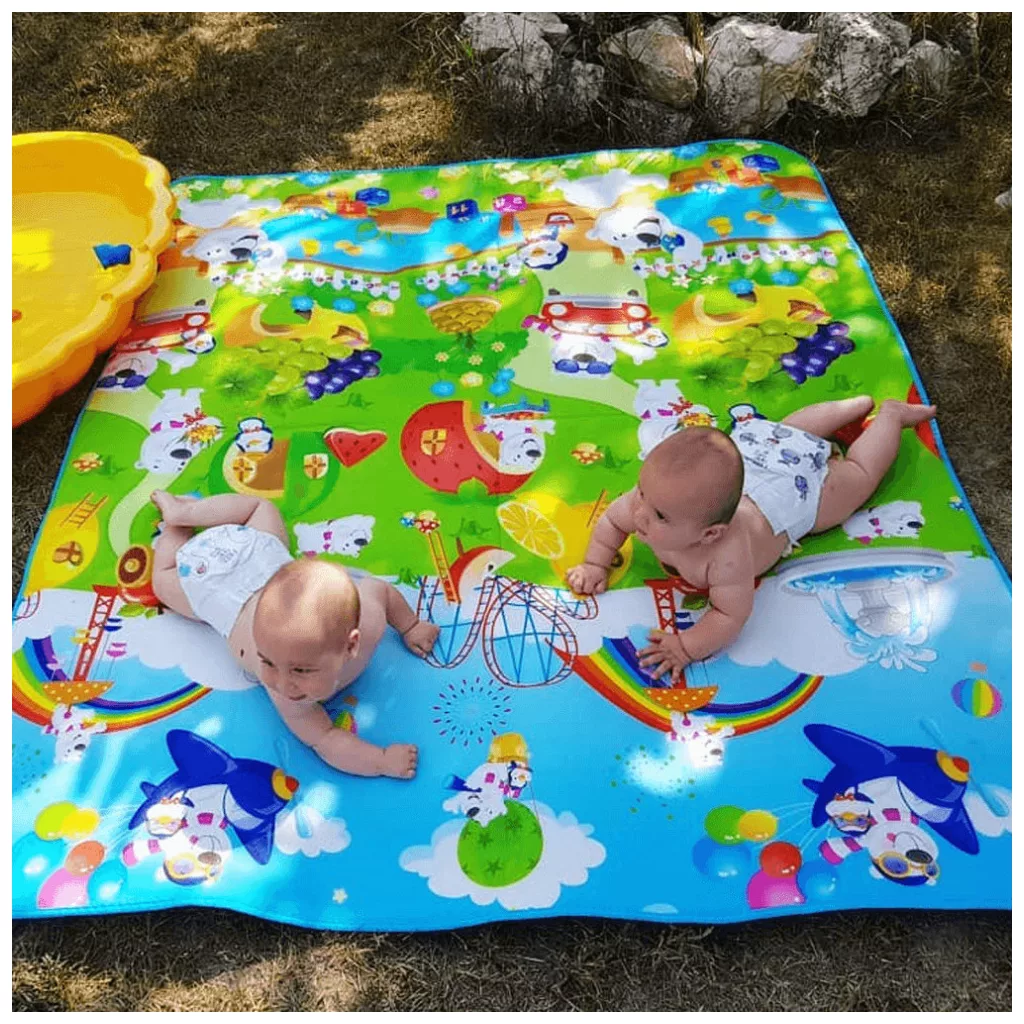 Óriási méretű játszószőnyeg (1,8x1,5 méter), ami nagyon praktikus minden család számára. Kőre, parkettára, szőnyegre is helyezhetjük, és vízálló felülete miatt a szabadban is használhatjuk. Cuki, színes mintáival a gyerkőcök kedvence.