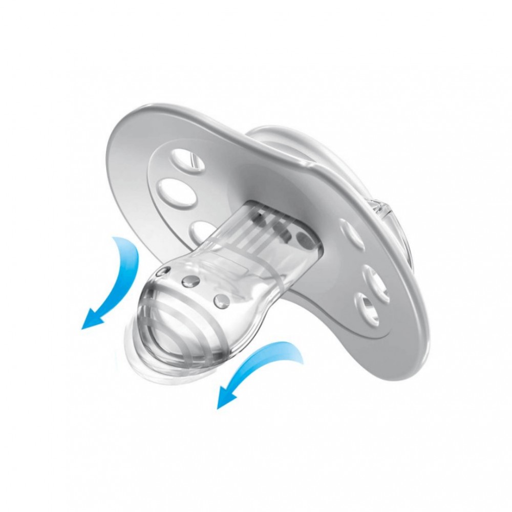 Ez a dinamikus nyugtató cumi szakértők által lett kifejlesztve, akiknek fontos a szopóreflex védelme. Szimmetrikus kerekded alakja a mellbimbó alakját tükrözi. A cumifej puha szilikon rétege lehetővé teszi a természetes ritmusú szoptatást.