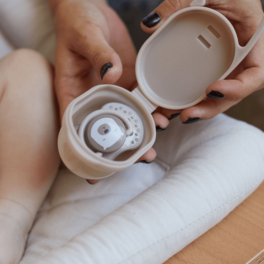 Higiénikus kialakítás: Védi a cumit a szennyeződésektől.
